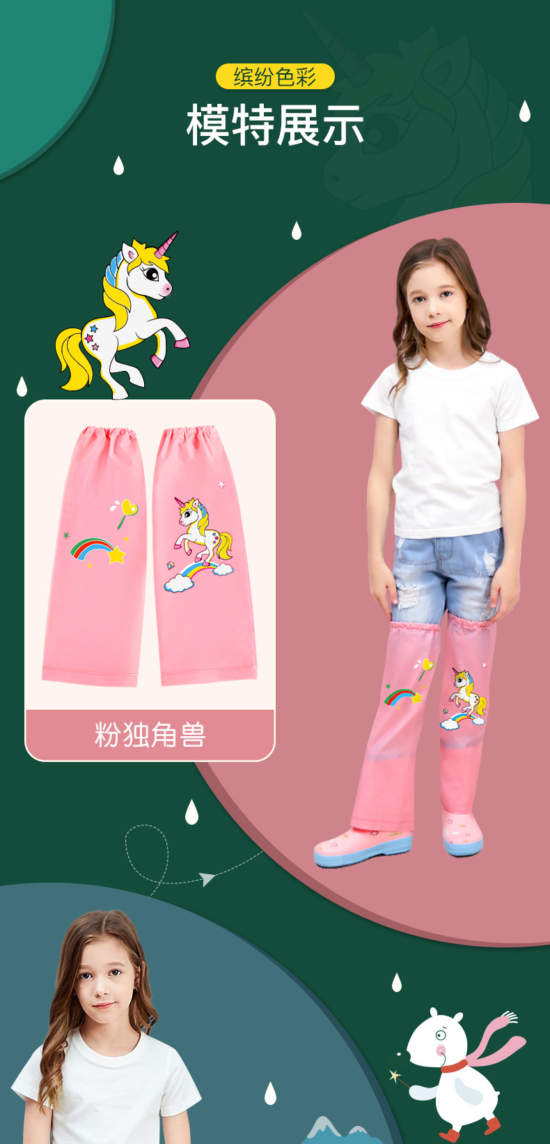 Mu Meng 어린이 고층 레인 팬츠 세트 유치원 오염 방지 다리 세트 소년 소녀 방수 바지 아기 방수 다리 세트스토어 가기