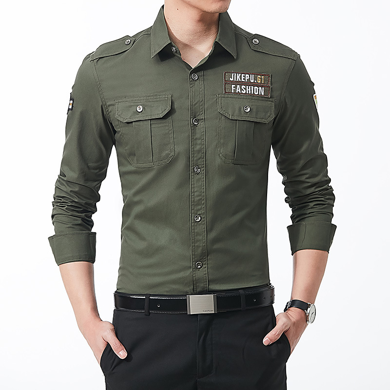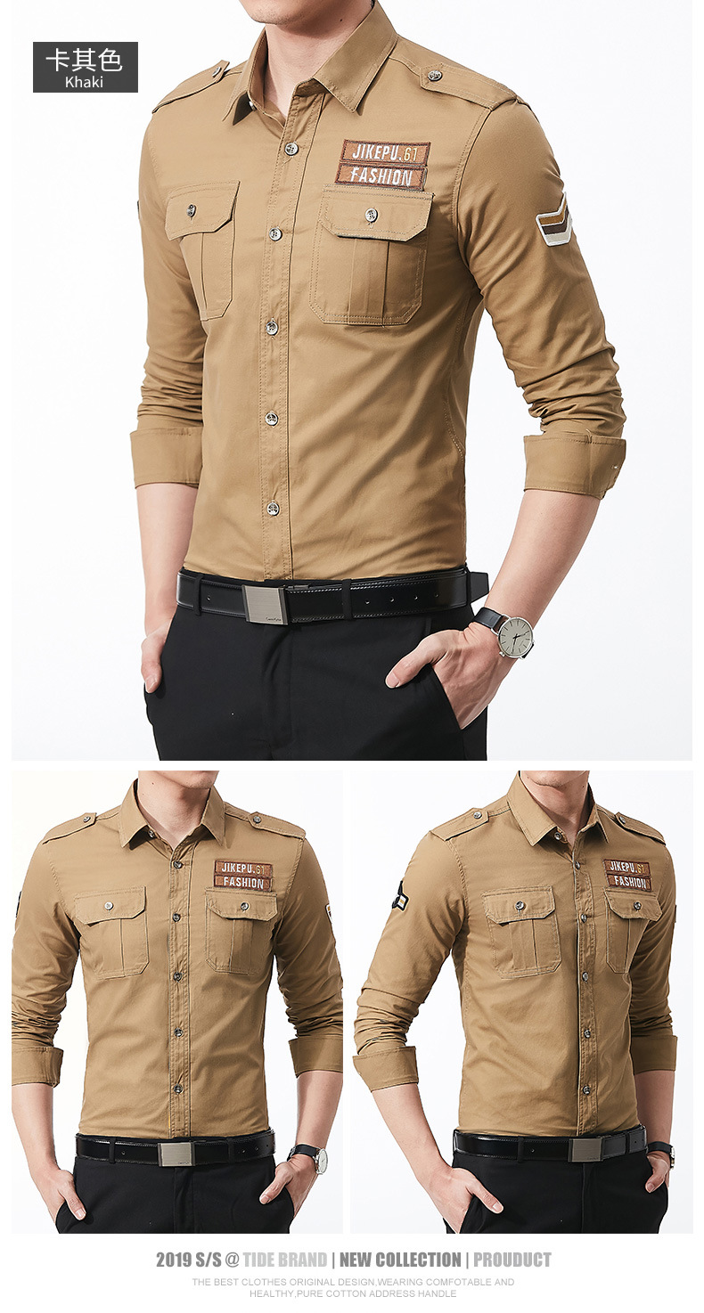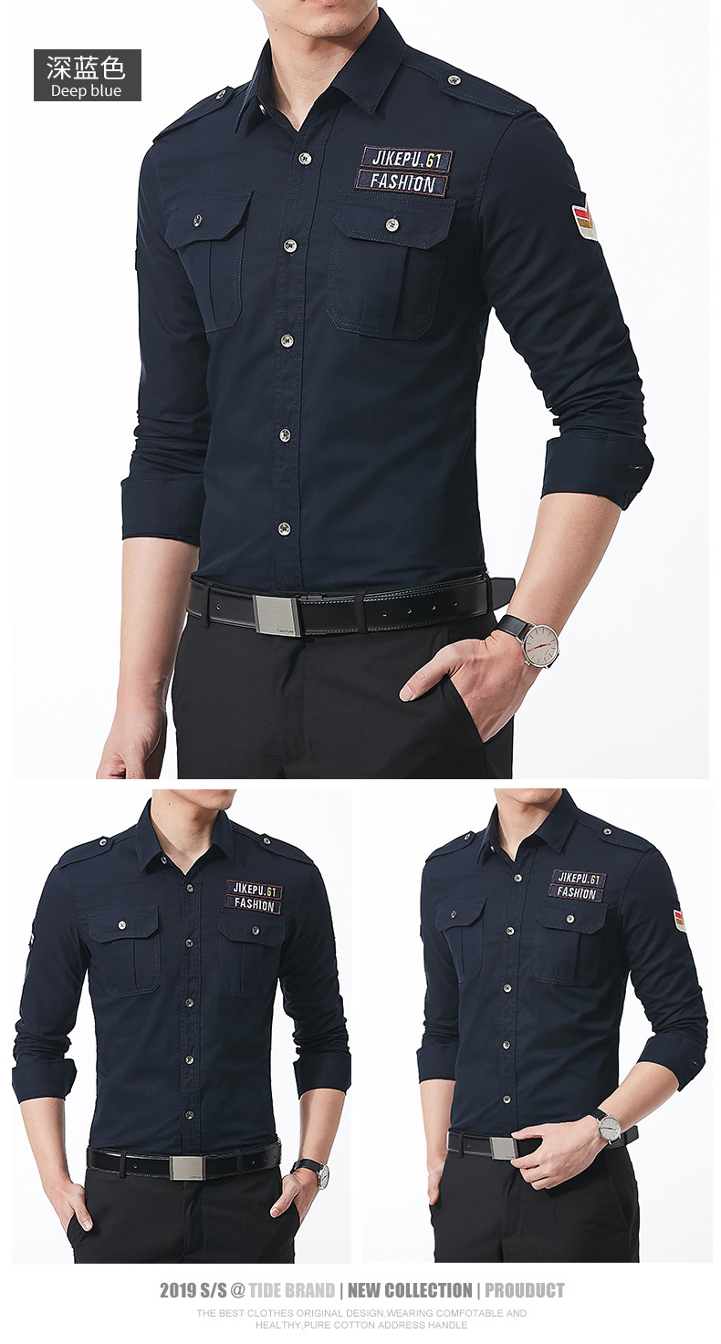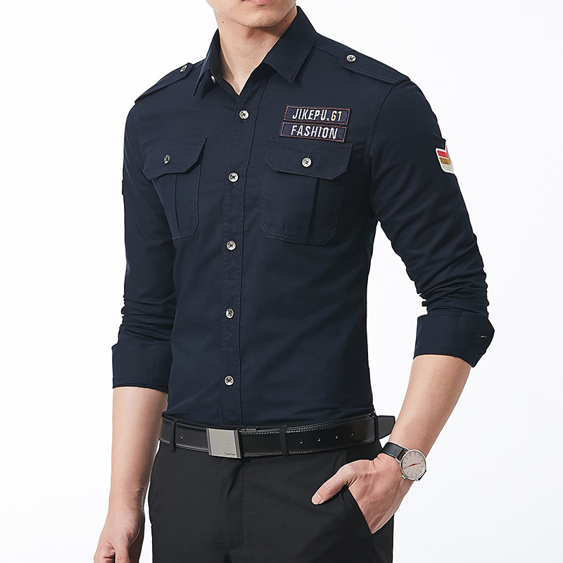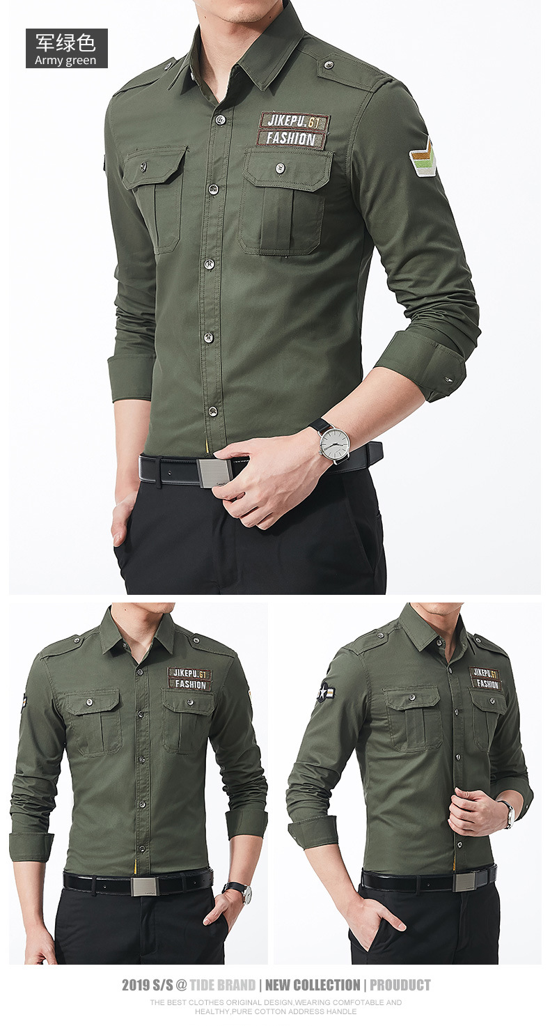 긴팔 셔츠 남성용 슬림핏 순면 캐주얼 셔츠 남성용 봄과 가을 새로운 유행 밀리터리 스타일 코트 얇은 재킷