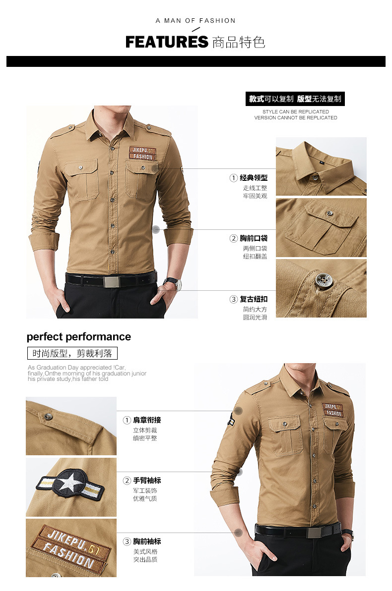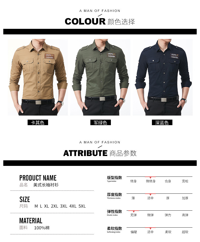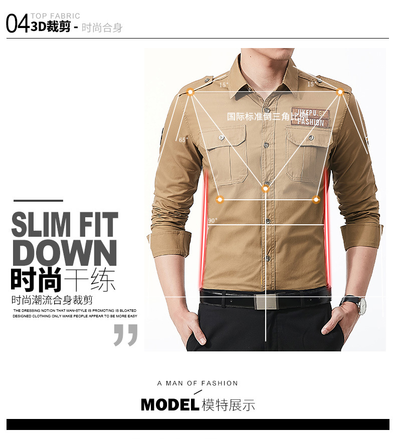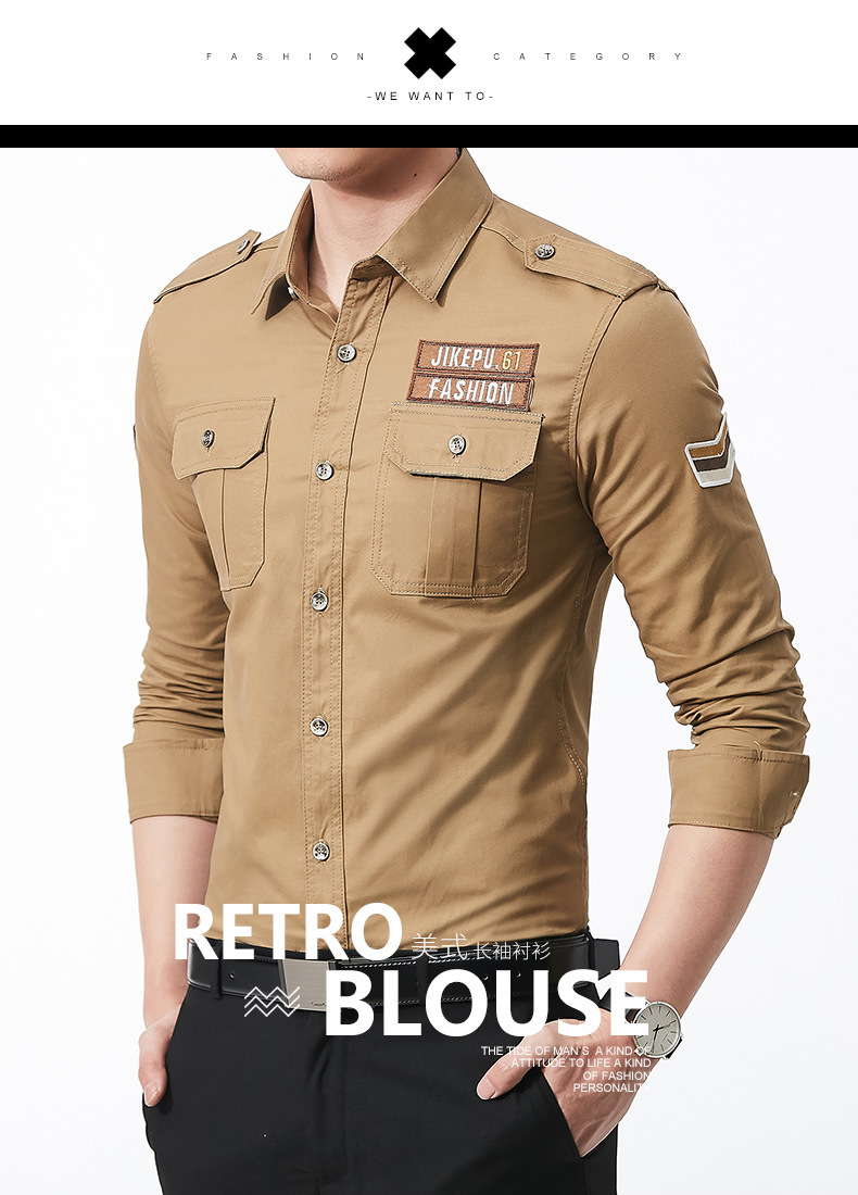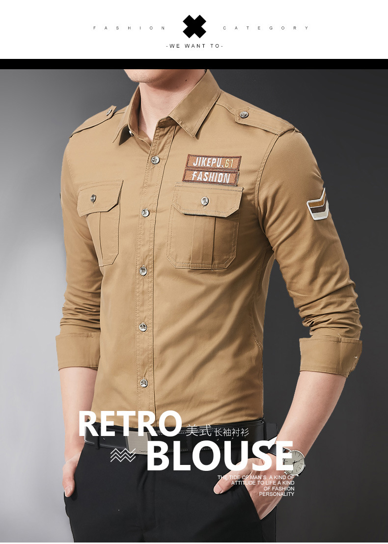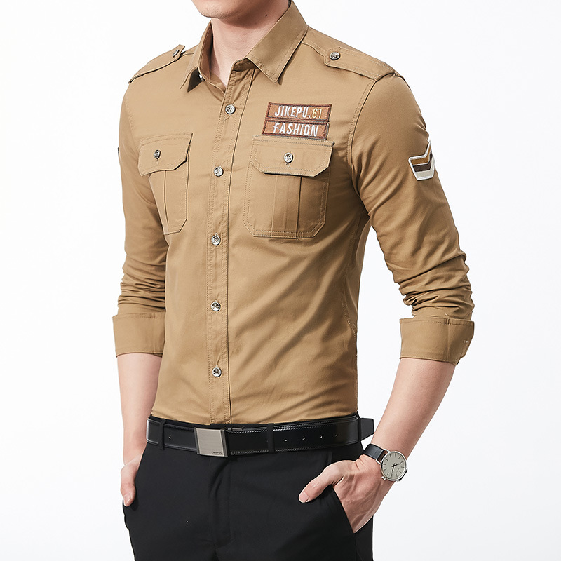 긴팔 셔츠 남성용 슬림핏 순면 캐주얼 셔츠 남성용 봄과 가을 새로운 유행 밀리터리 스타일 코트 얇은 재킷