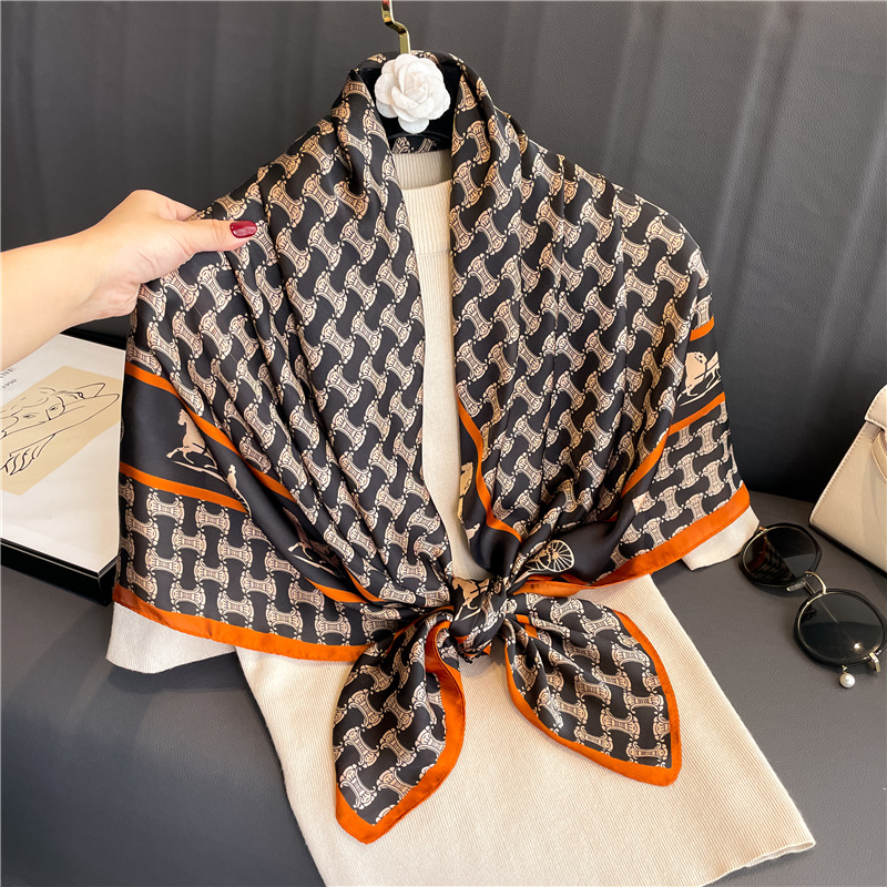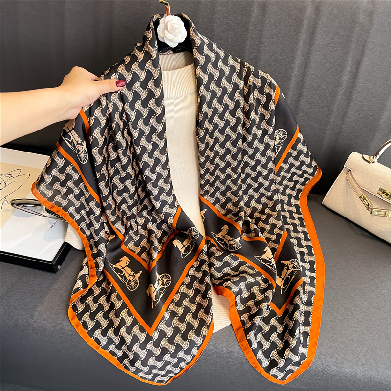 캐리지 패션 스카프 스카프 자외선 차단제 모든 경기 여성용 대형 숄 110cm 실크 여행 실크 스카프 이중 사용