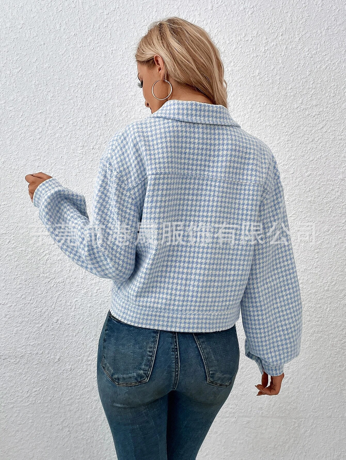 재고 아마존 이베이 가을과 겨울 여성 코트 옷깃 싱글 브레스트 하운즈투스 자카드 자켓 통근 코트 여성