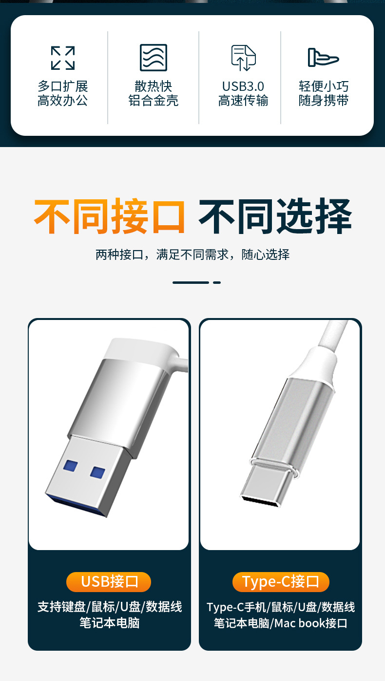 2-in-1 확장 도크 USB 다중 인터페이스 분배기 노트북 허브 컴퓨터 변환기 HUB 확장 도크스토어 가기
