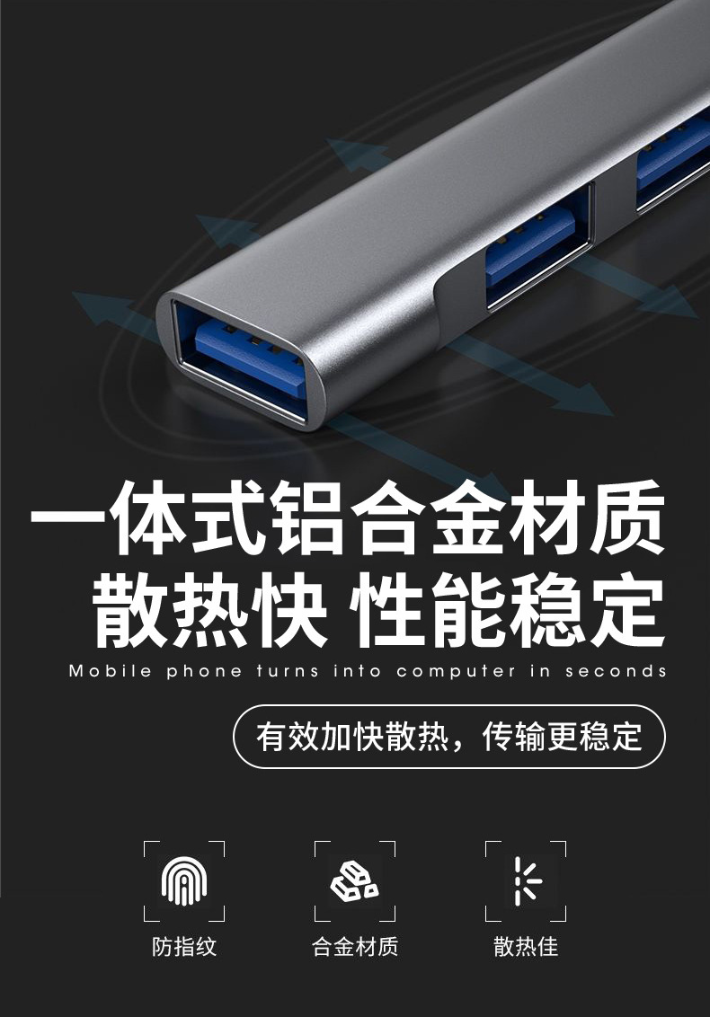 • 2-in-one 타입-c 1-4 + USB 수 어댑터 실버 블랙 라인