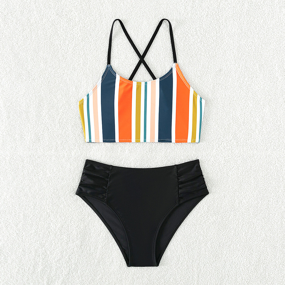 2023 새로운 아마존 유럽과 미국 섹시한 하이 웨이스트 대형 어린이 분할 비키니 여아 수영복