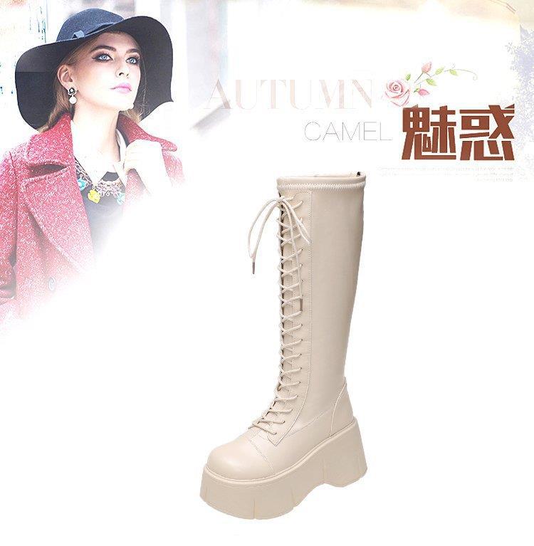 마틴 부츠 여성용 2024 가을 겨울 신상 유럽 및 미국 스타일 라운드 토 패션 부츠 하이탑 여성 가죽 부츠 여성 신발 도매스토어 가기