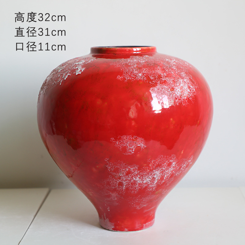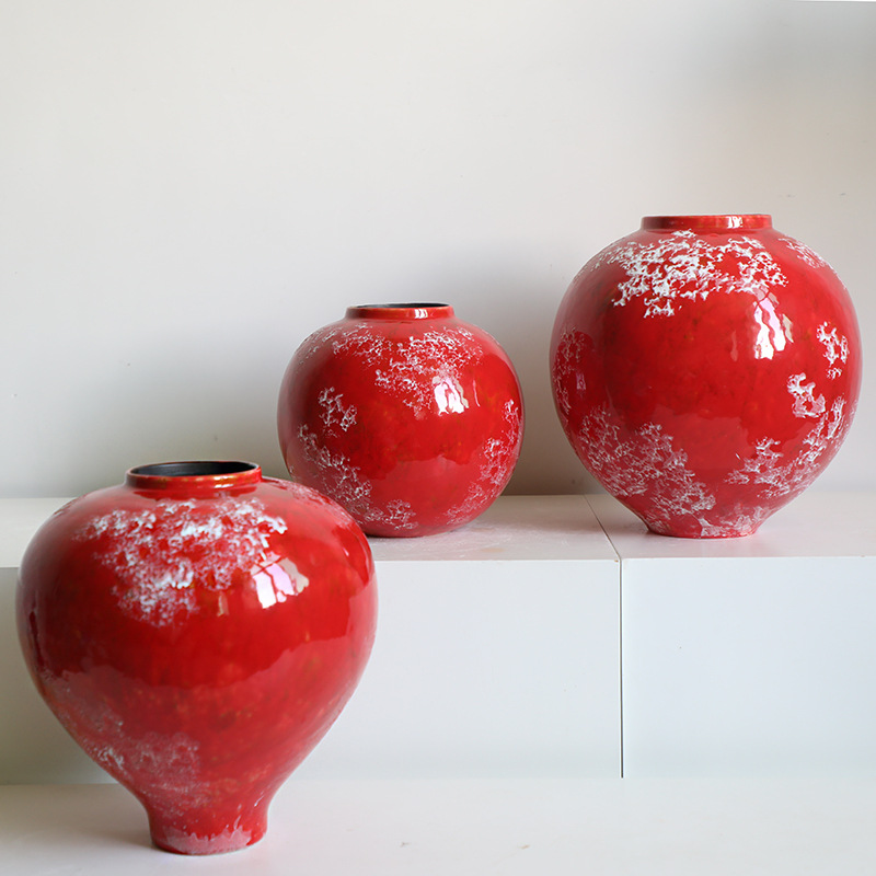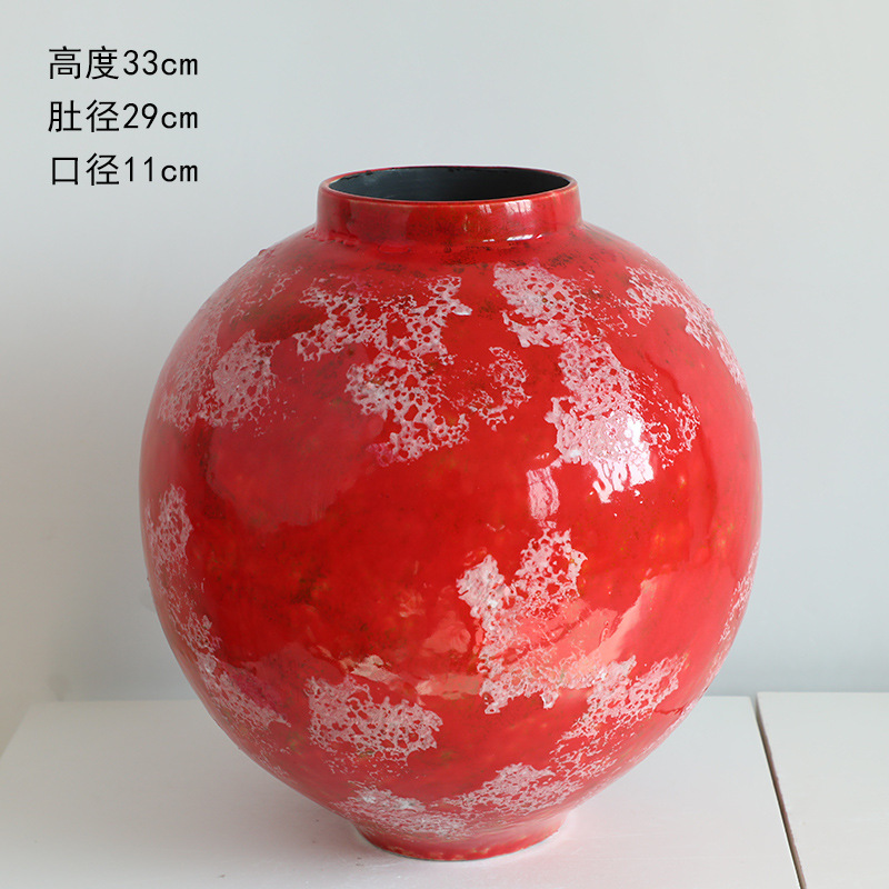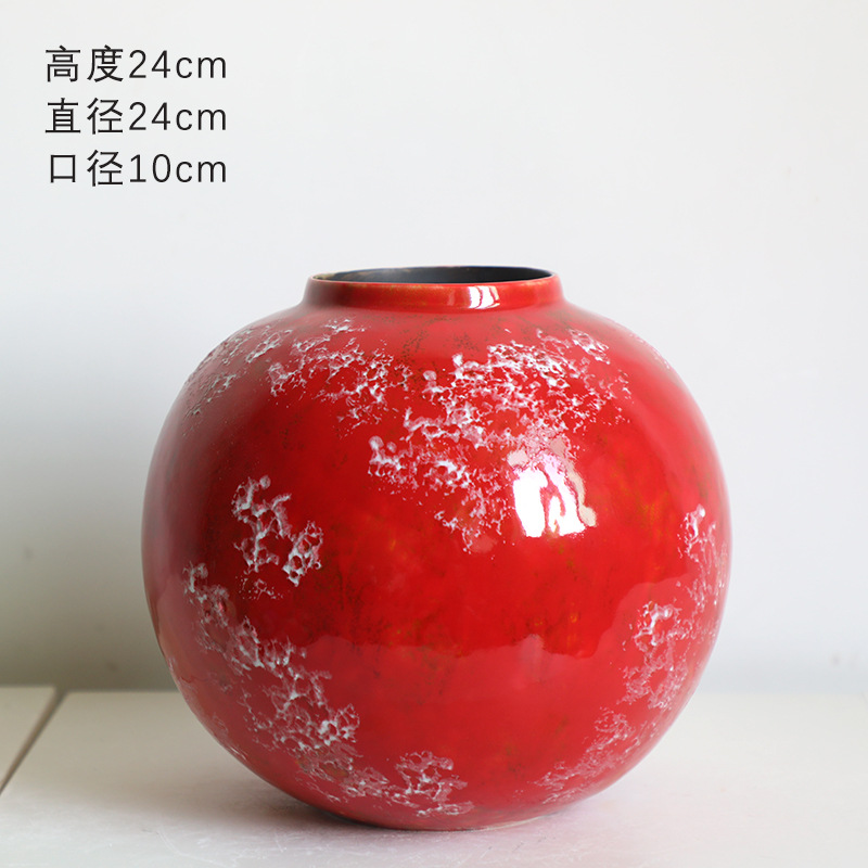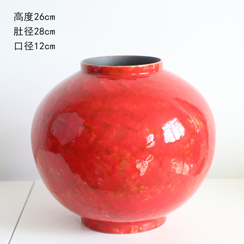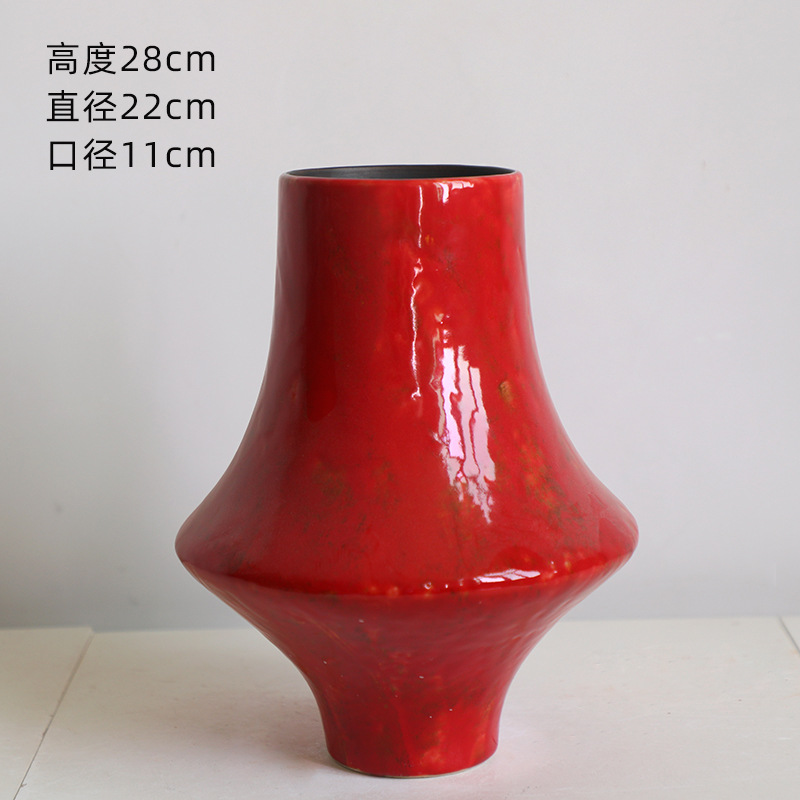 레드 라운드 세라믹 꽃병 모던 뉴 중국식 거실 꽃꽂이 장식품 모형실 홈스테이 입구 고급 장식스토어 가기