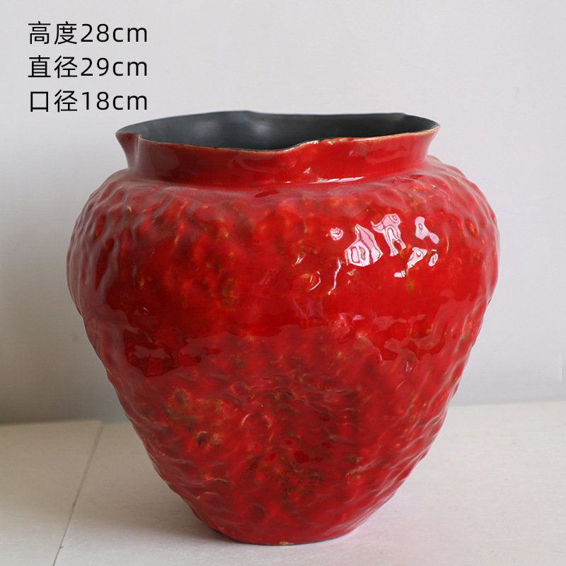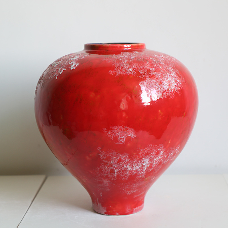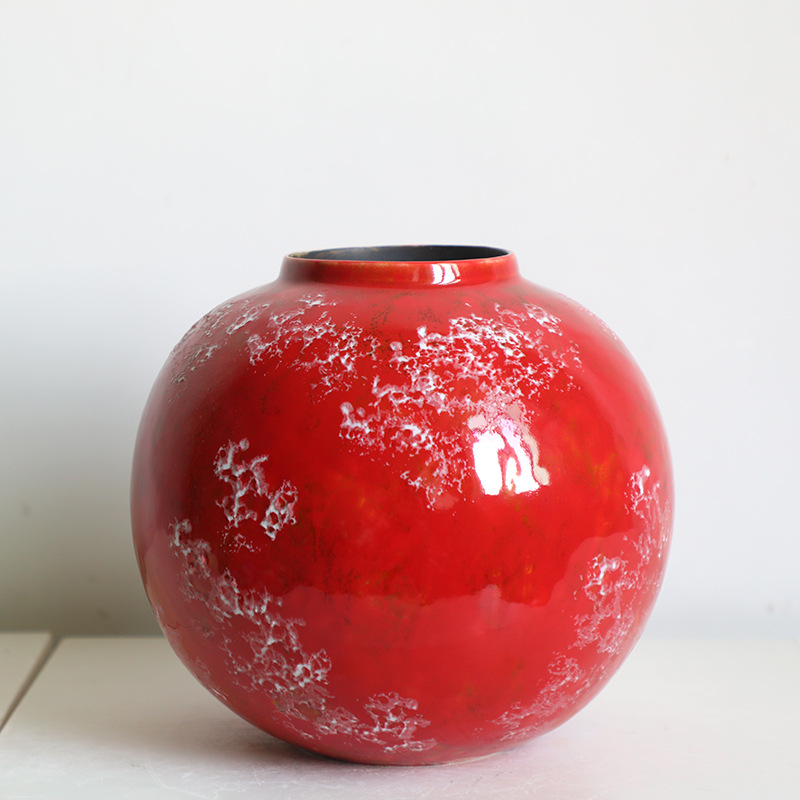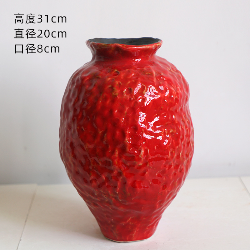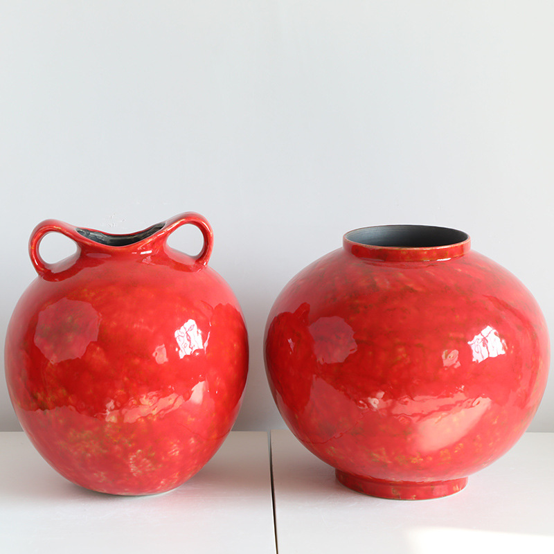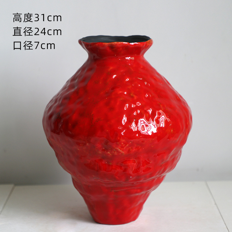 레드 라운드 세라믹 꽃병 모던 뉴 중국식 거실 꽃꽂이 장식품 모형실 홈스테이 입구 고급 장식스토어 가기