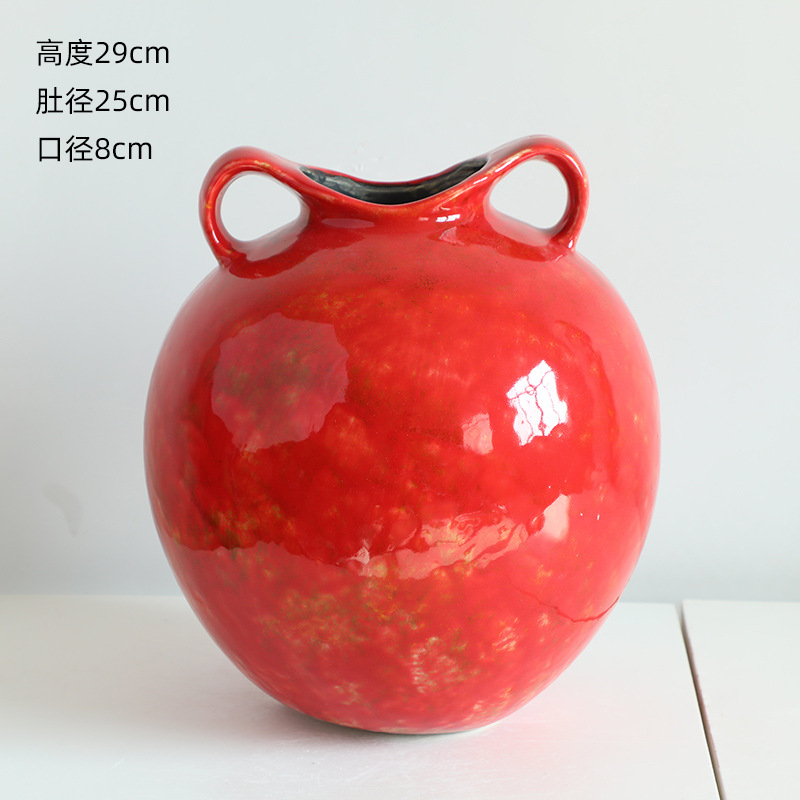 레드 라운드 세라믹 꽃병 모던 뉴 중국식 거실 꽃꽂이 장식품 모형실 홈스테이 입구 고급 장식