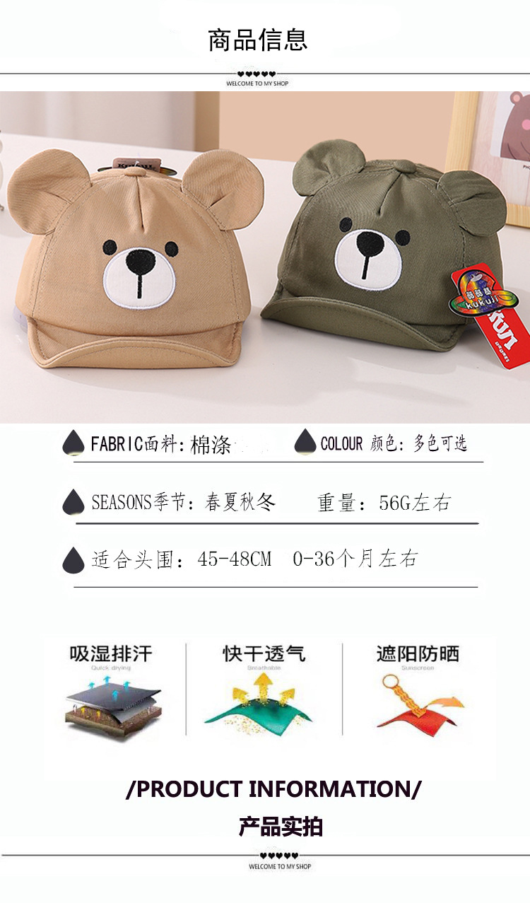 귀여운 아기 모자 어린이 야구 모자 만화 귀 플립 모자 봄과 가을 한국 부드러운 가장자리 모자 곰 모자스토어 가기