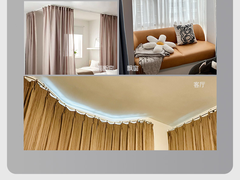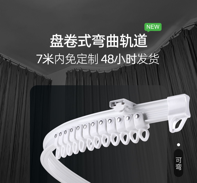 Zhishang 코일 곡선 레일 상단 장착 구부릴 수있는 슬라이드 음소거 풀리 LU 형 다자 창 곡선 커튼 트랙스토어 가기