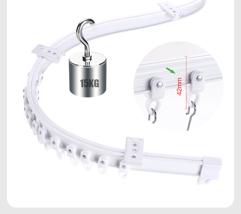 Zhishang 코일 곡선 레일 상단 장착 구부릴 수있는 슬라이드 음소거 풀리 LU 형 다자 창 곡선 커튼 트랙