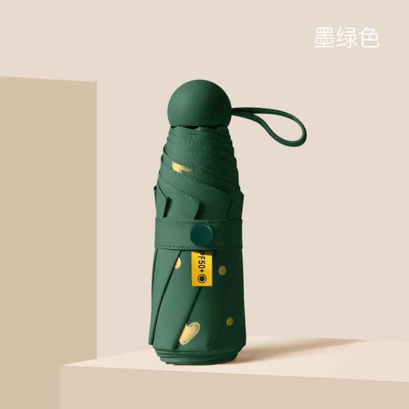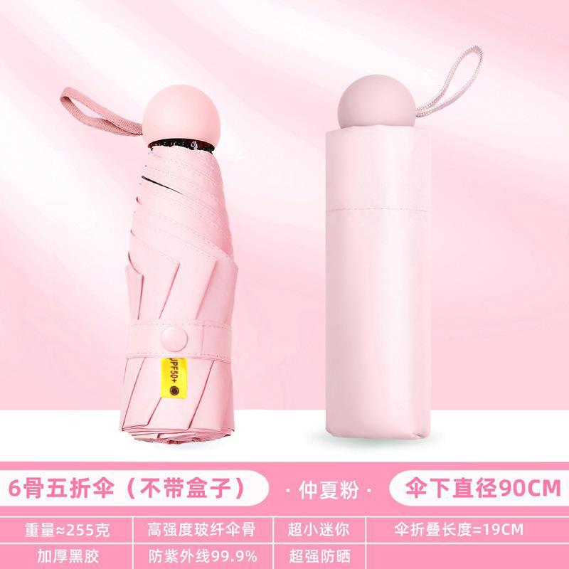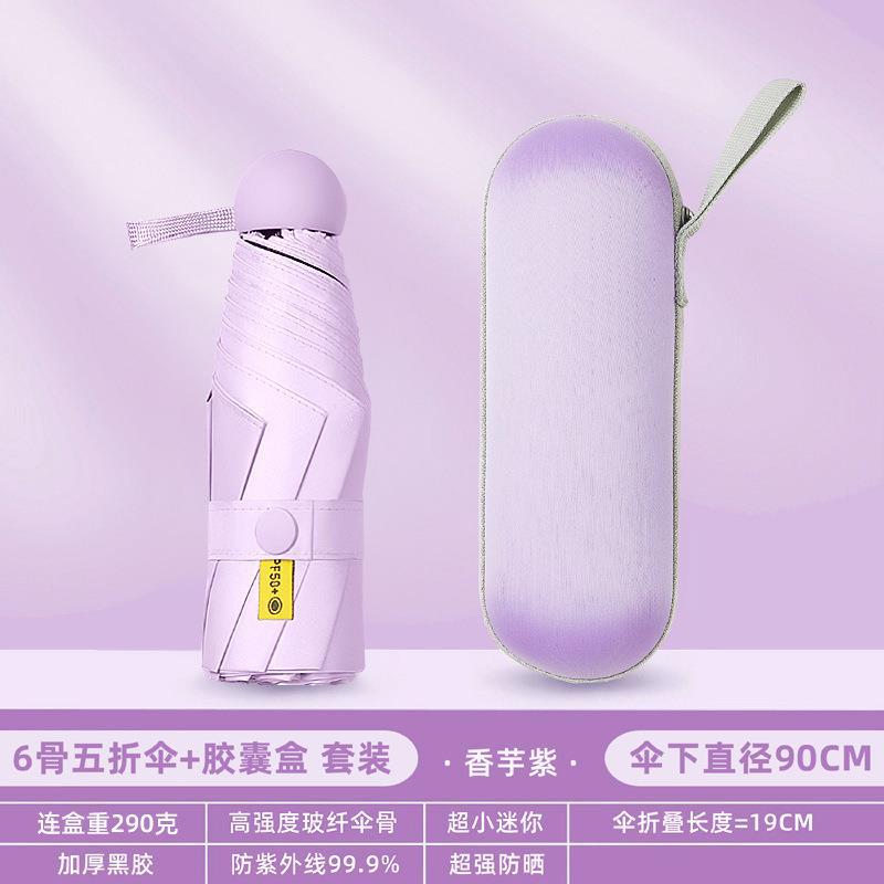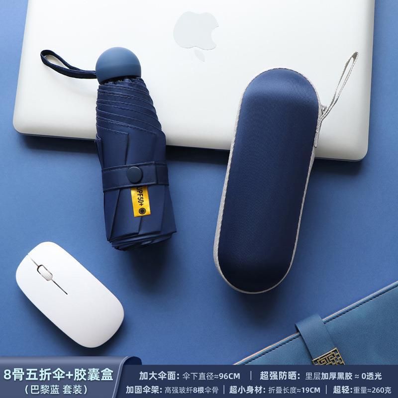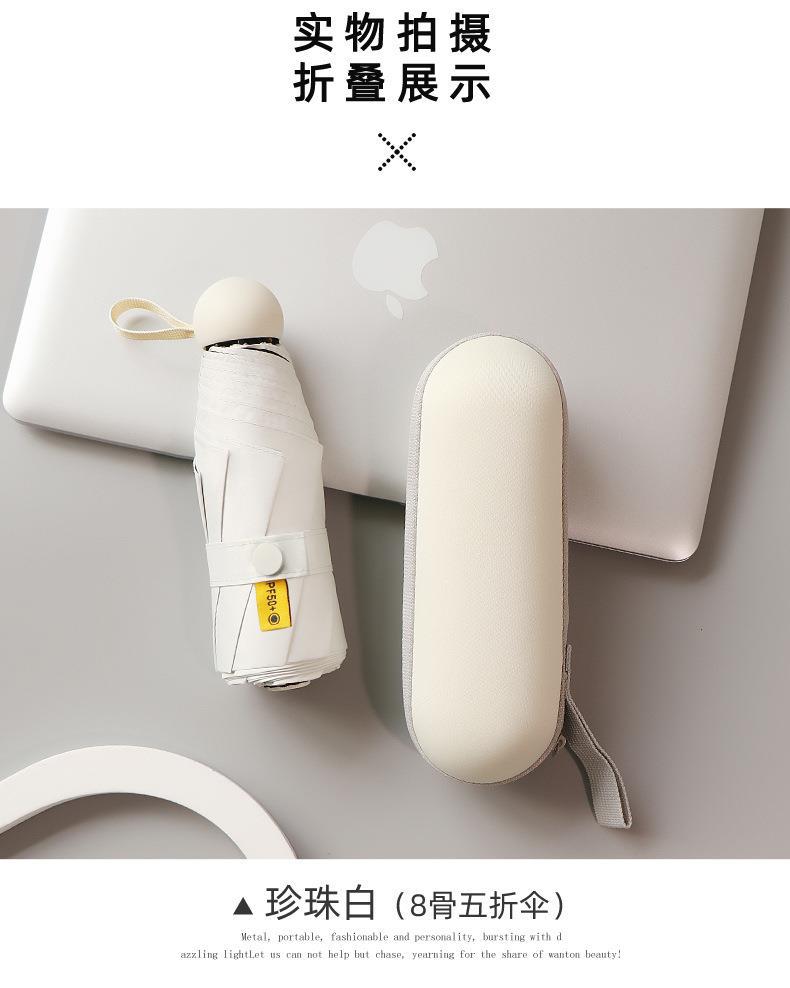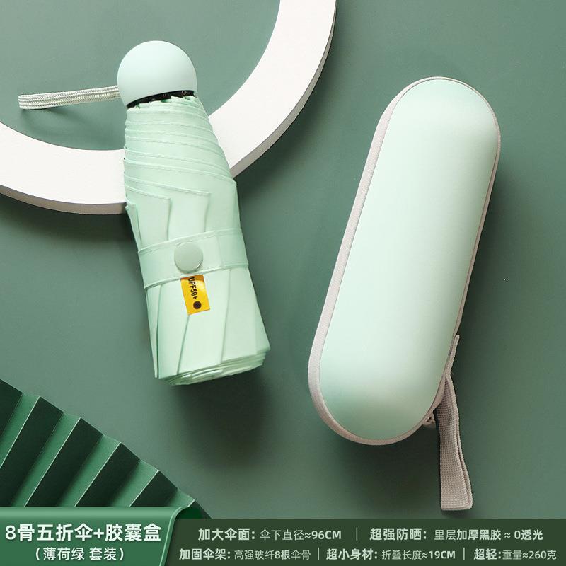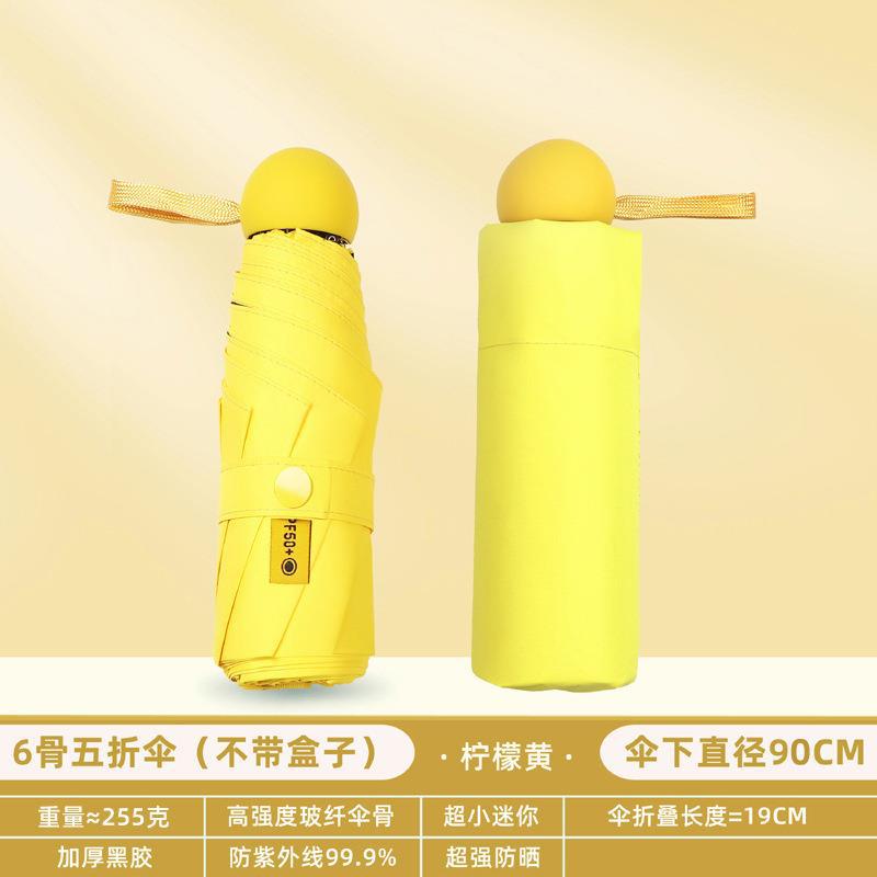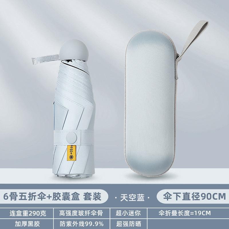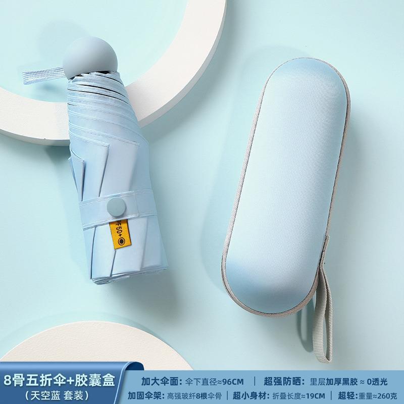 포켓 캡슐 5 배 써니 우산 이중 사용 소형 휴대용 인쇄 로고 차양 태양 보호 및 여성용 자외선 차단