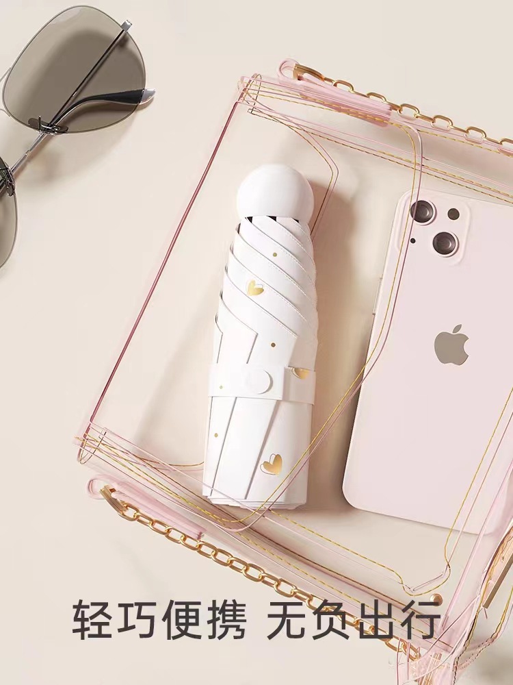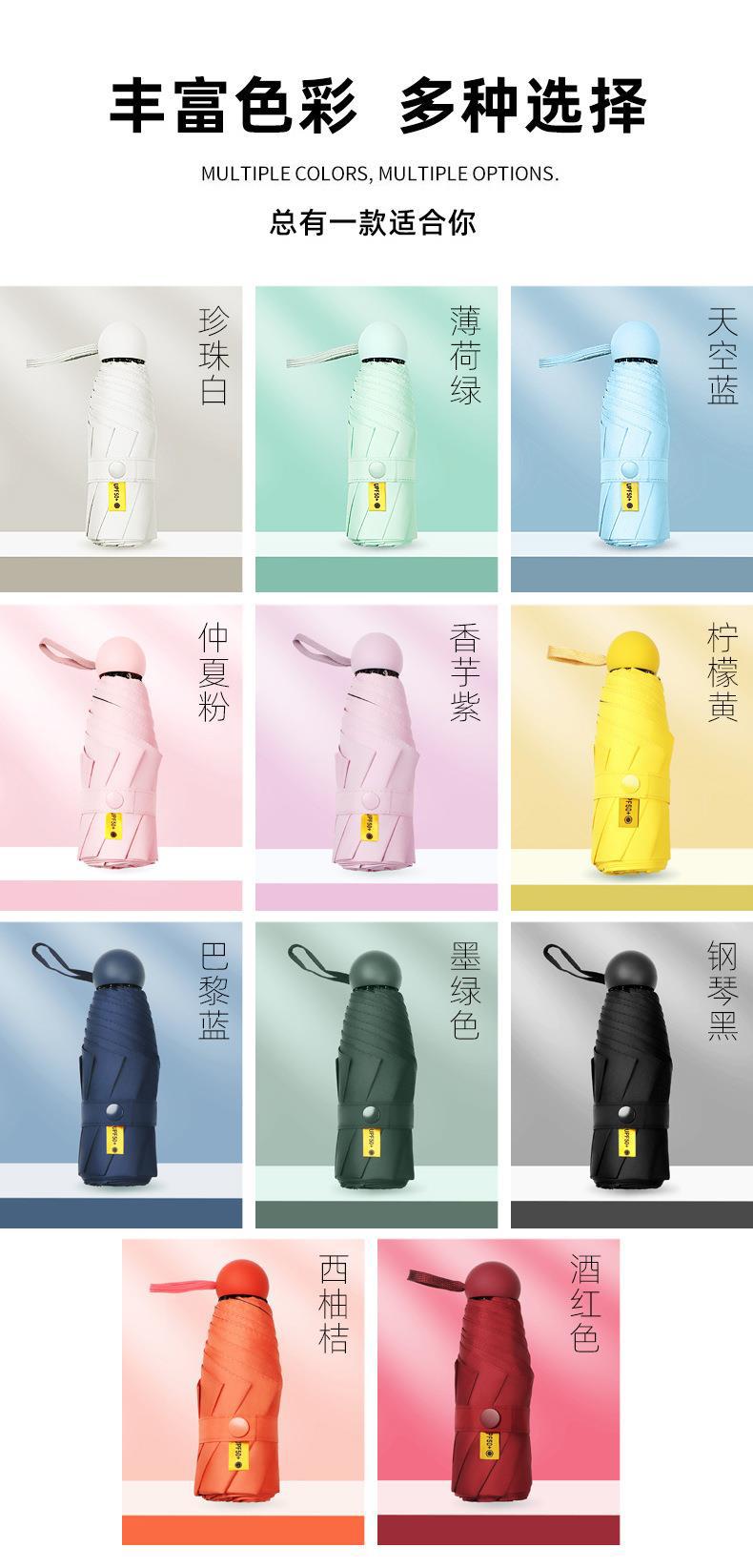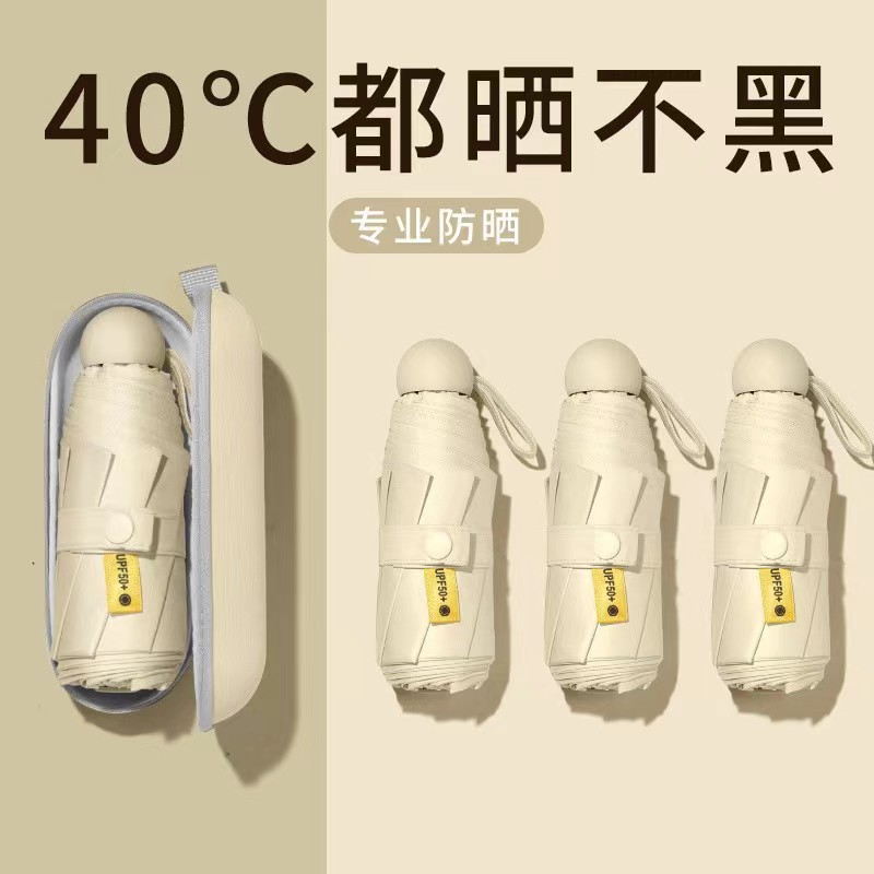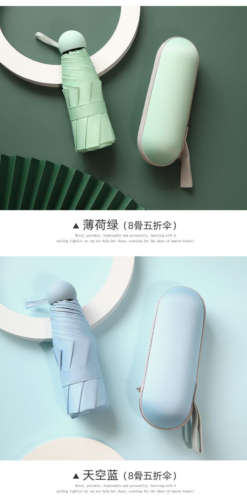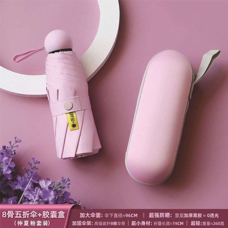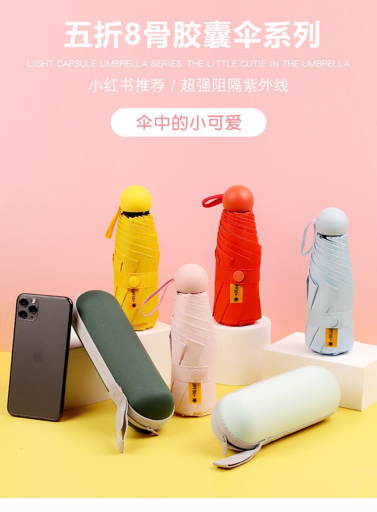 포켓 캡슐 5 배 써니 우산 이중 사용 소형 휴대용 인쇄 로고 차양 태양 보호 및 여성용 자외선 차단스토어 가기
