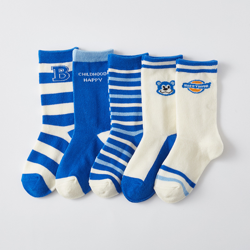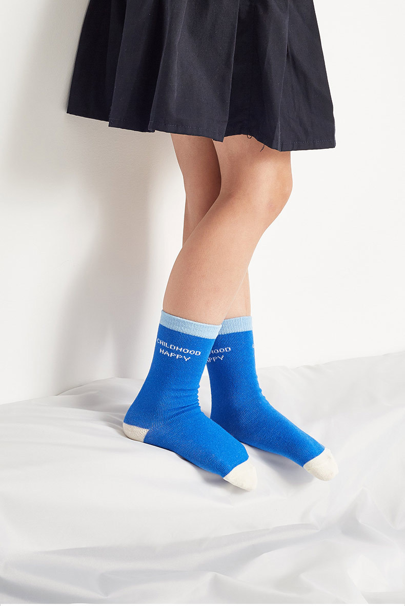 봄 어린이 양말 신상 클라인 블루 레터 남아용 면 양말 컬리지 스타일 통기성 중목 양말 트렌디 도매