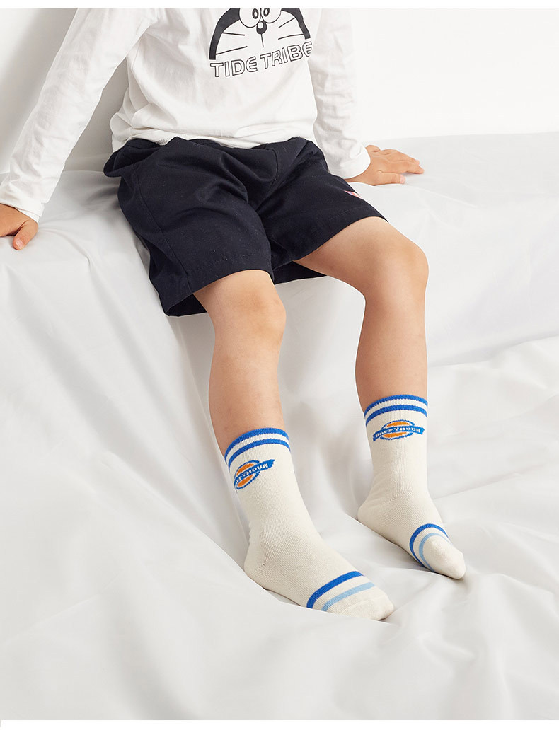 봄 어린이 양말 신상 클라인 블루 레터 남아용 면 양말 컬리지 스타일 통기성 중목 양말 트렌디 도매스토어 가기