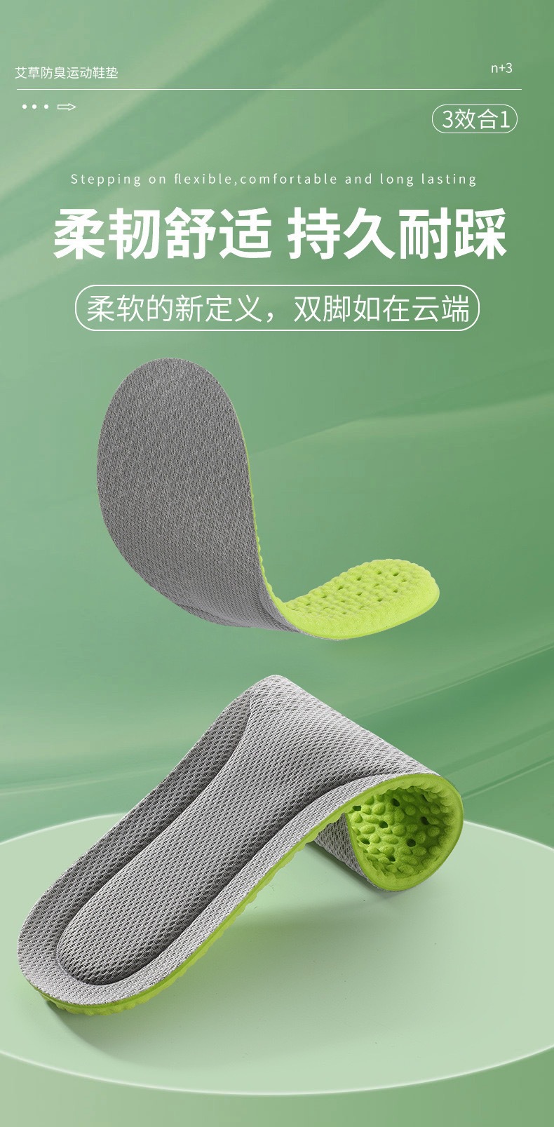 군훈련 시 장시간 서 있어도 피곤하지 않은 쑥 녹색 스포츠 방취 깔창, 남녀공용, 땀 흡수, 통기성, 매우 부드럽고 충격을 흡수하는 깔창스토어 가기