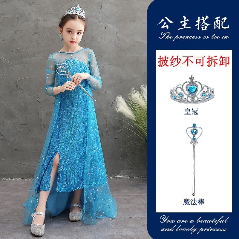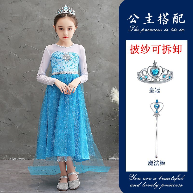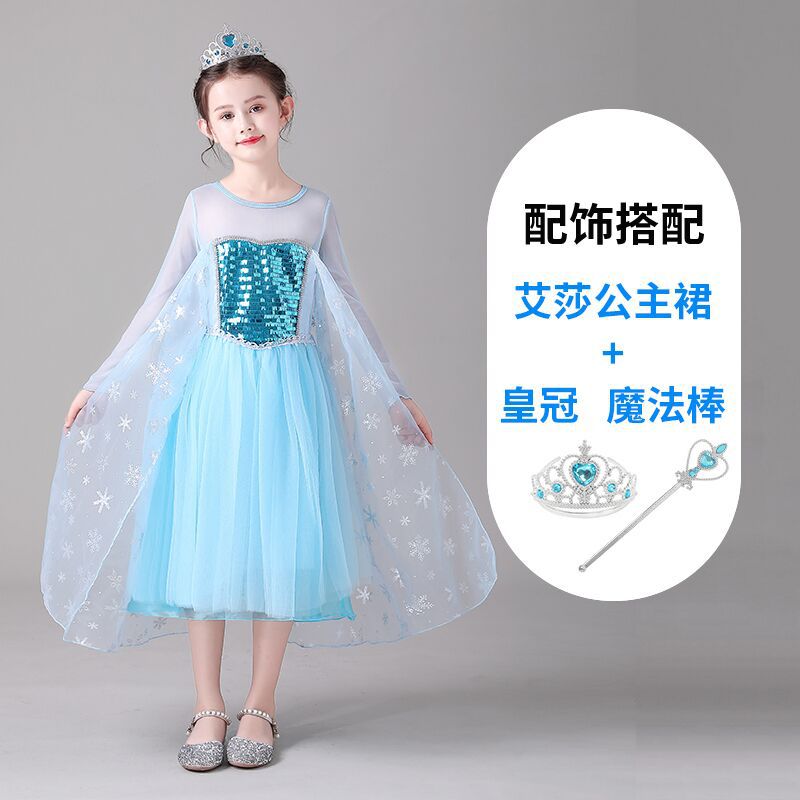 • 블루 프린세스 원피스 긴 소매 크라운 + 매직 지팡이 + 나비