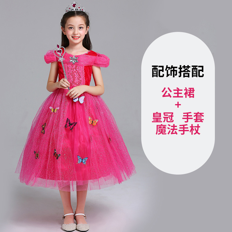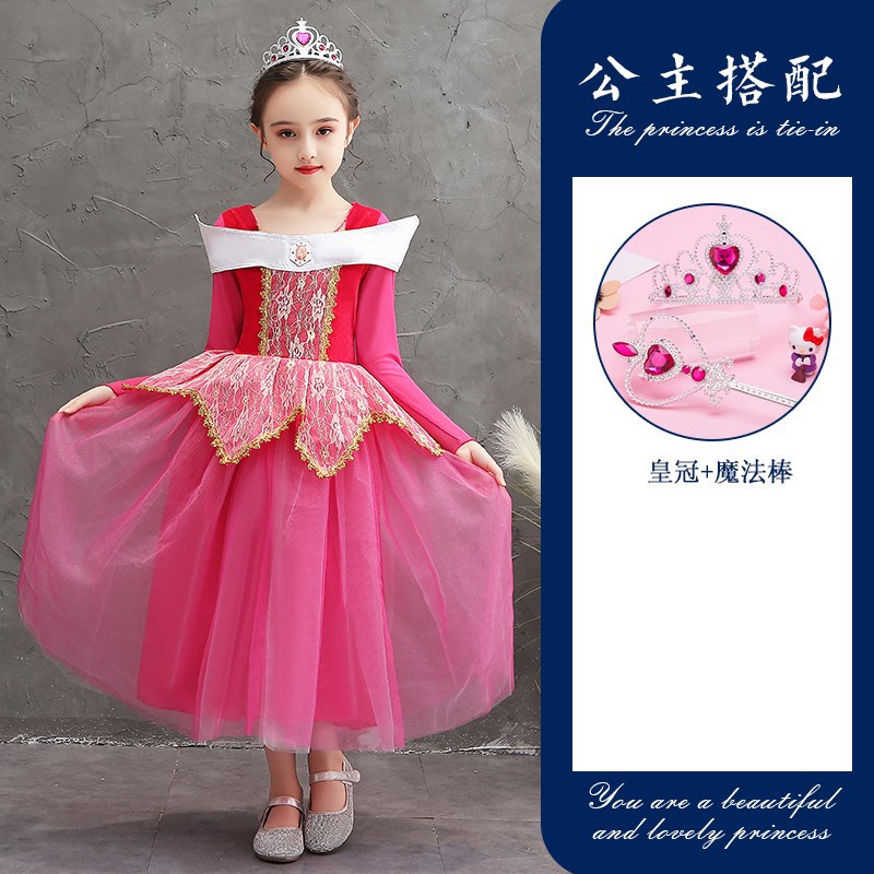 • 로즈 레드 공주 원피스 크라운 + 매직 지팡이 + 장갑