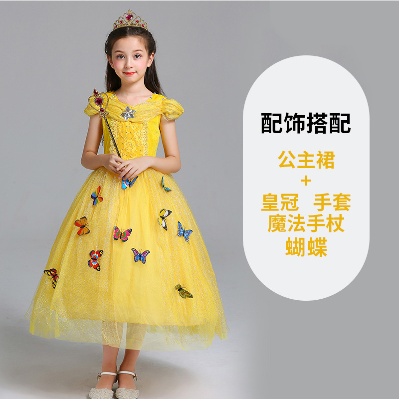 • 크라운 + 매직 지팡이 + 장갑 + 나비 노란색 공주 원피스