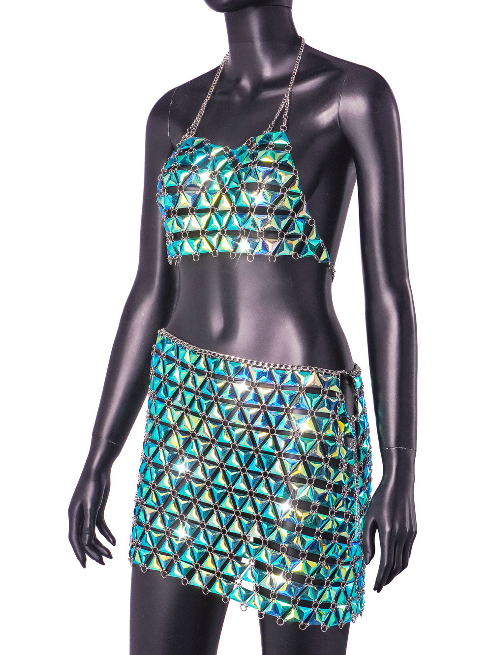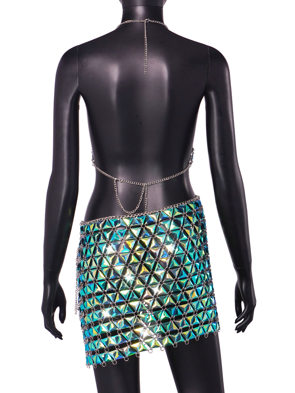INS2023 AliExpress 폭발 아마존 나이트 클럽 매직 컬러 보석 교수형 목 중공 조끼 세트 여성 L20851