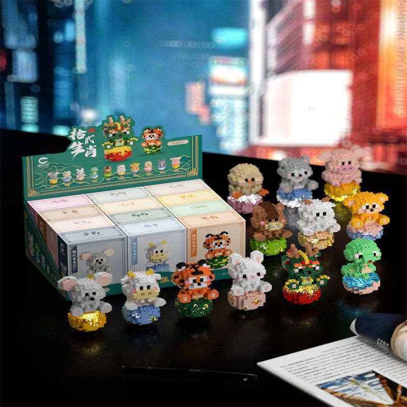 레고 조디악 발광 행성 빌딩 블록과 호환되는 Chao Le Chuang 인형 수제 블라인드 박스 조립 장난감 장식품