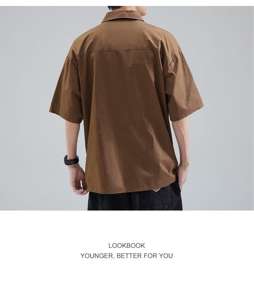 일본식 레트로 워싱 폴로 셔츠 남성용 느슨한 스트리트 디자인 감각 골동품 작업 셔츠 멀티 포켓 반팔 셔츠스토어 가기