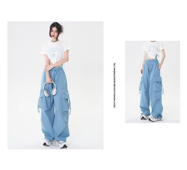 핫 걸 스타일 도파민 카고 팬츠 소녀의 여름 얇은 아메리칸 스타일 힙합 루즈한 모든 매치 와이드 레그 캐주얼 스트레이트 팬츠스토어 가기