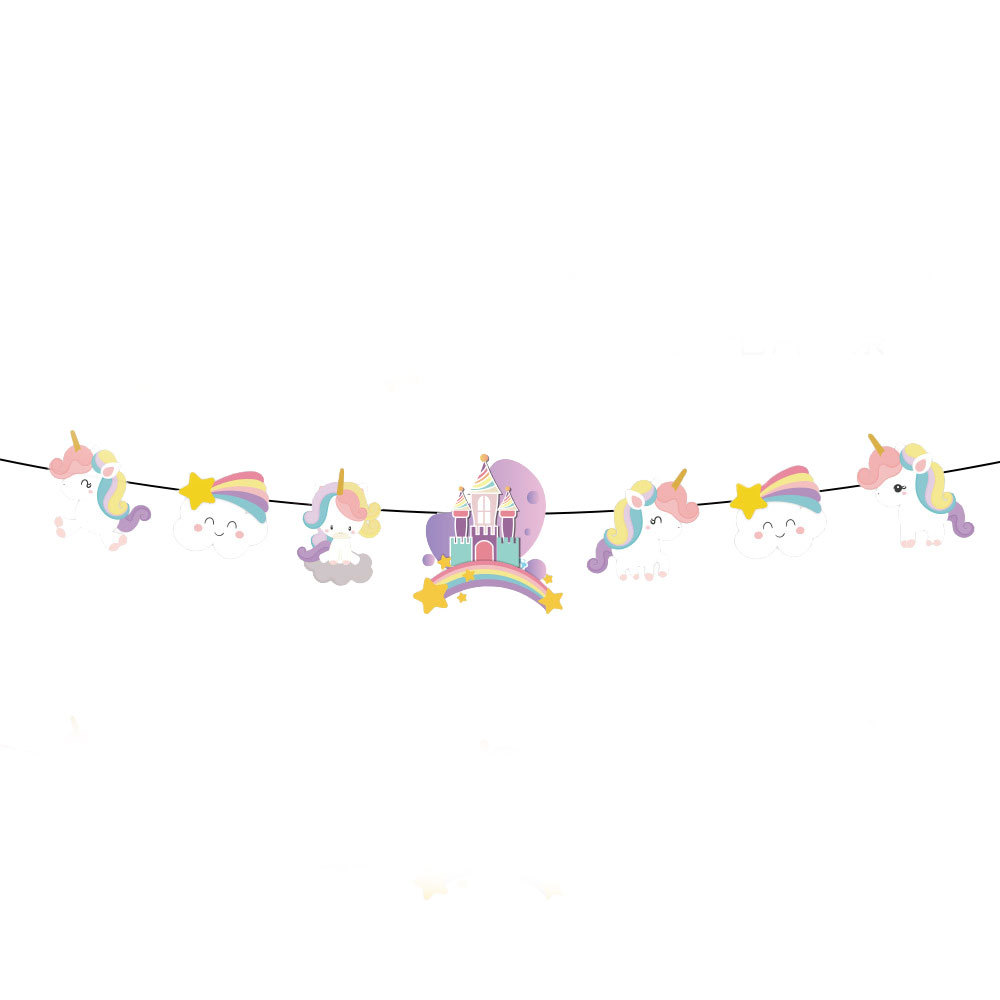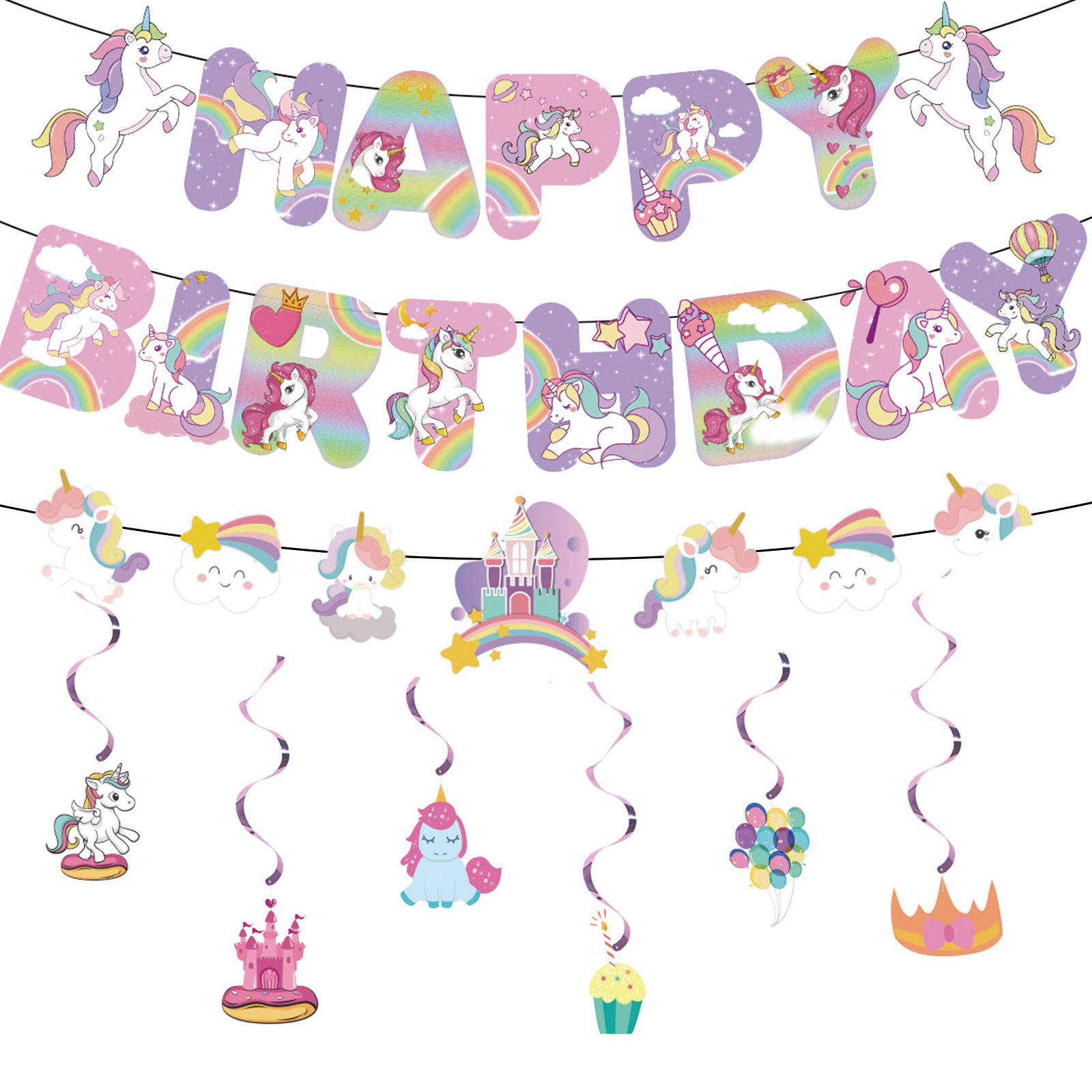 새로운 만화 유니콘 파티 용품 세트 행복한 생일 편지 깃발 어린이 생일 장식스토어 가기