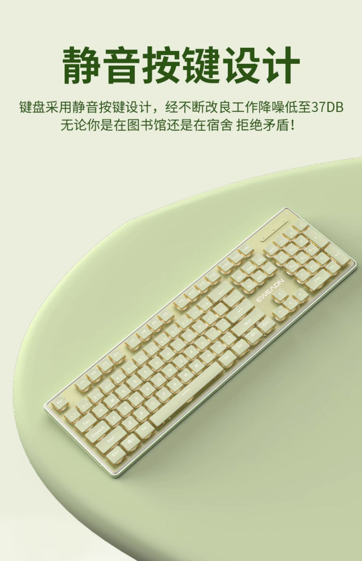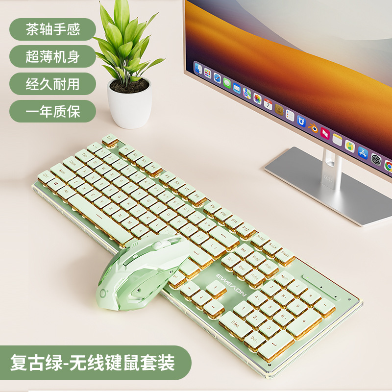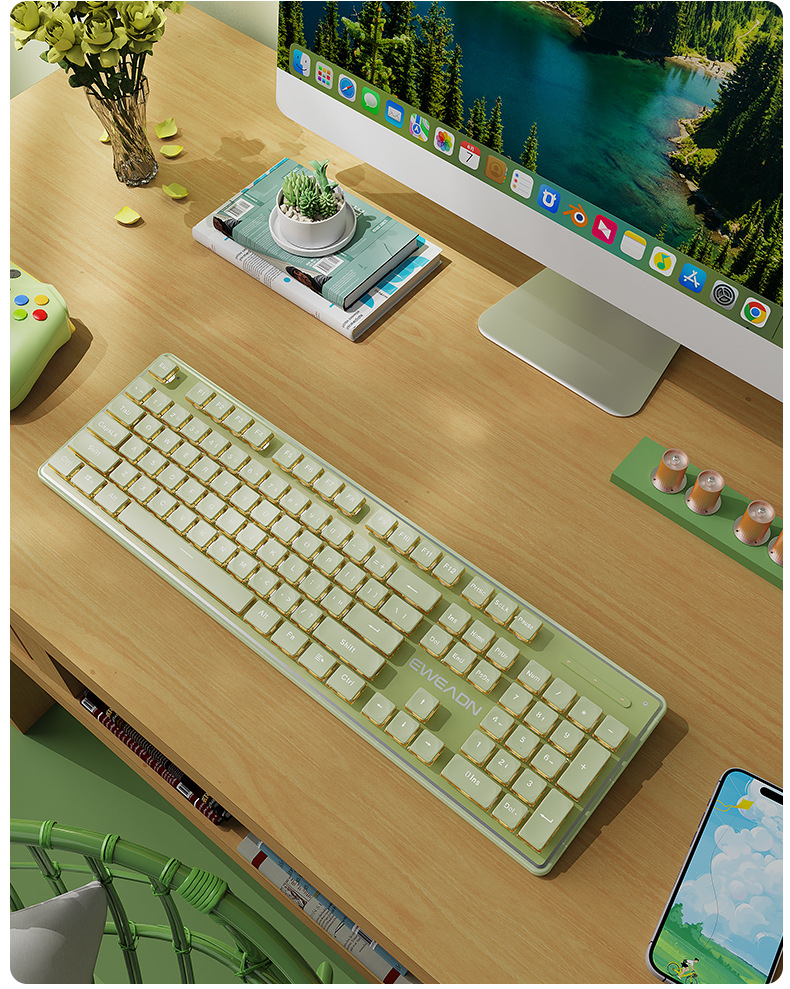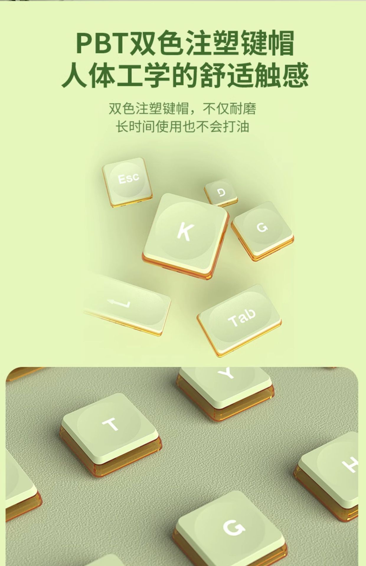• 레트로 그린과 옐로우 라이트 [음소거-블루투스 5.0 + 2.4g 더블 템플릿] 싱글 키보드