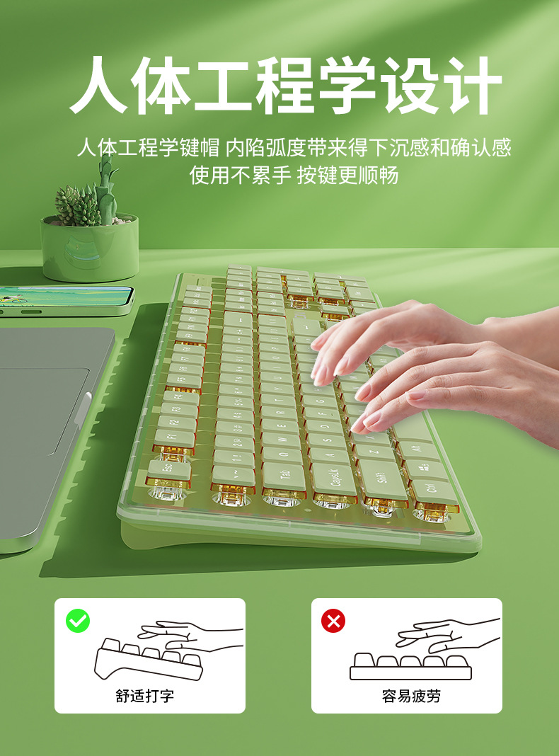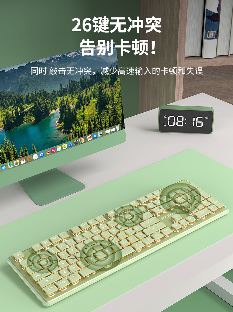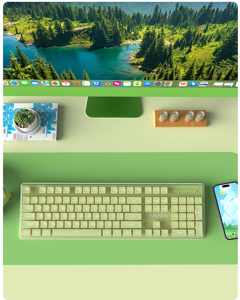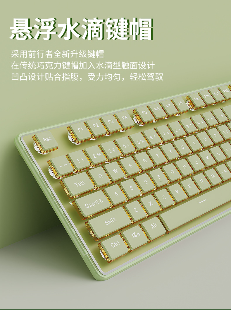 • 레트로 그린과 옐로우 라이트 [음소거-블루투스 5.0 + 2.4g 더블 템플릿] 싱글 키보드