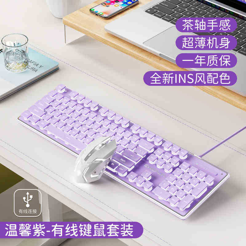 선구자 V3 유선 음소거 키보드 마우스 세트 컴퓨터 여자 사무실 기계 느낌 무선 블루투스 키보드 마우스