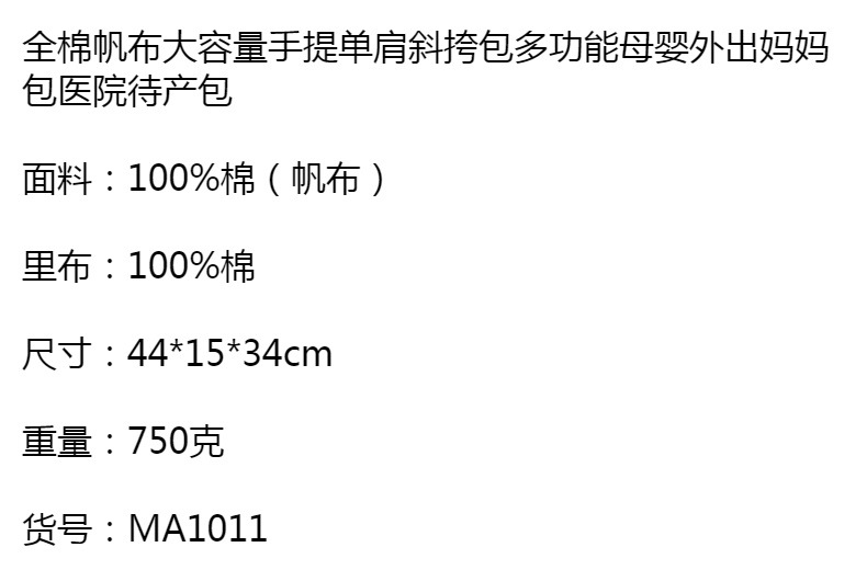 코튼 캔버스 대용량 휴대용 숄더 크로스 바디 백 다기능 산모 및 유아 외출 어머니 가방 병원 가방스토어 가기