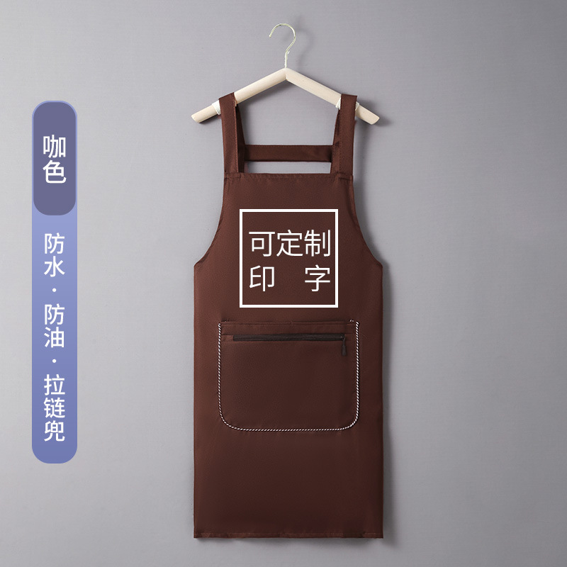 • H 스트랩 지퍼 포켓 방수 및 오일 방지 앞치마 다크 브라운