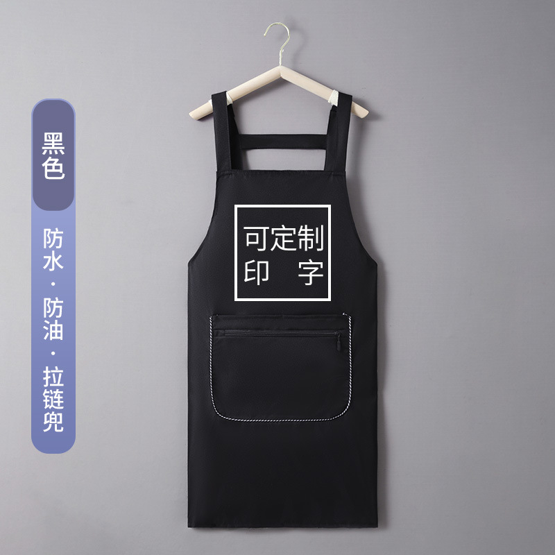 • H 스트랩 지퍼 포켓 방수 및 오일 방지 앞치마-블랙