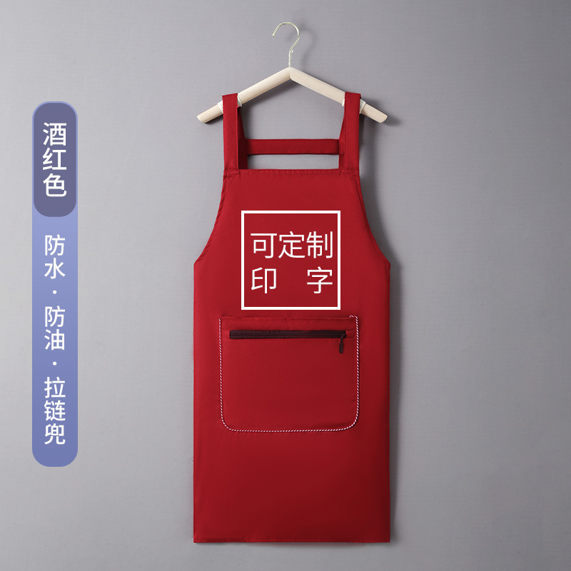 • H 스트랩 지퍼 포켓 방수 및 오일 방지 앞치마 버건디