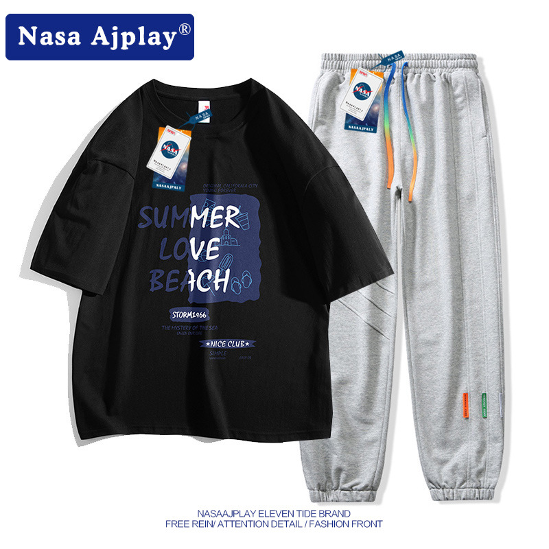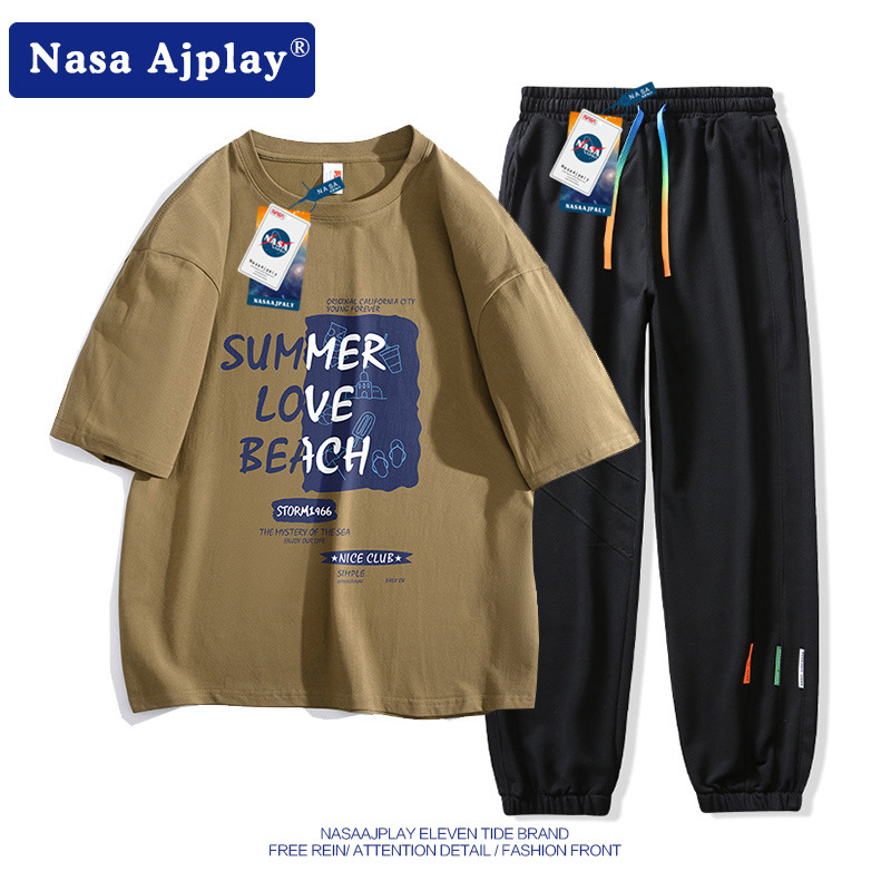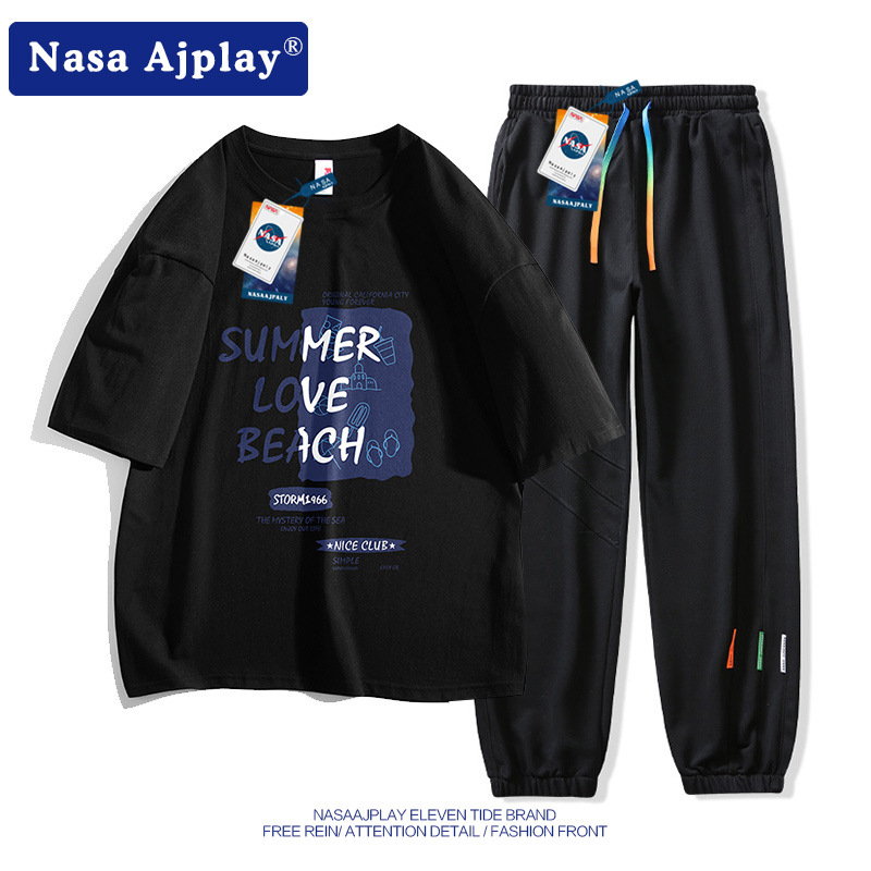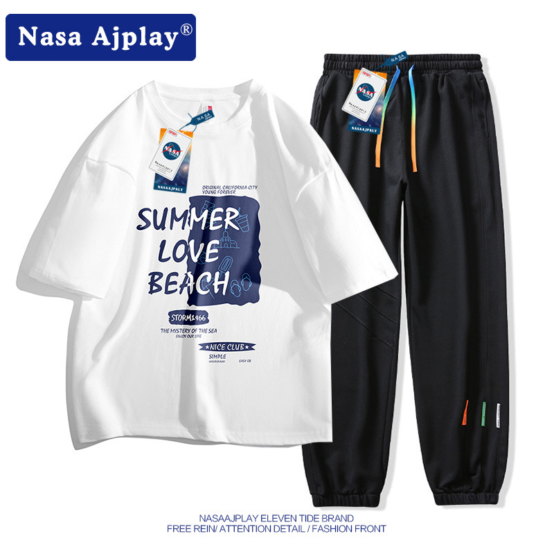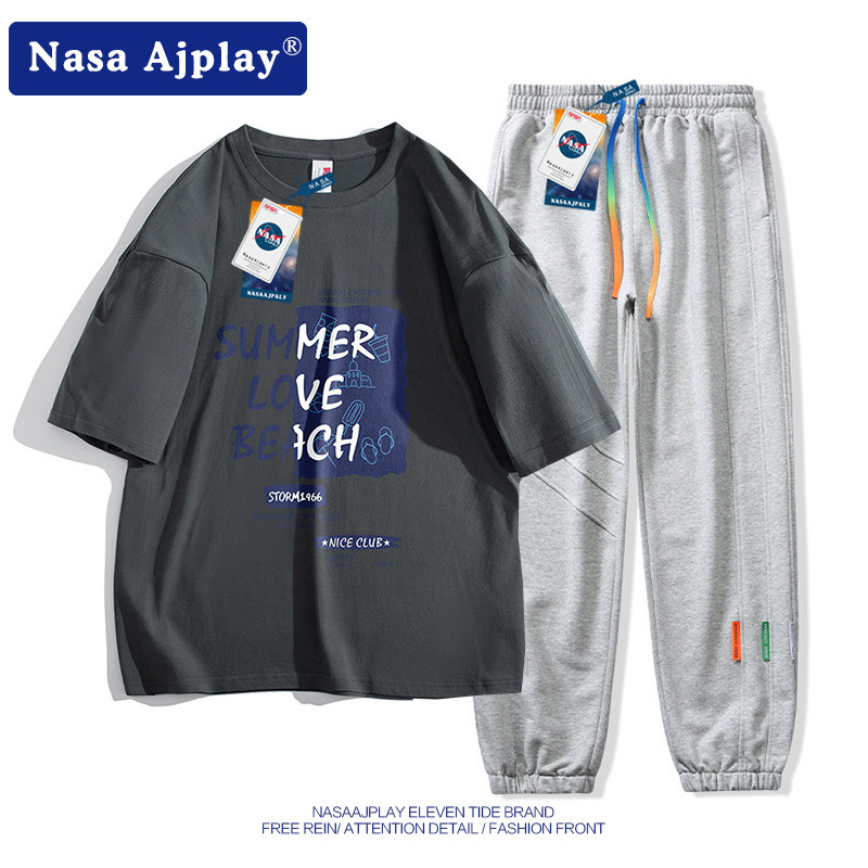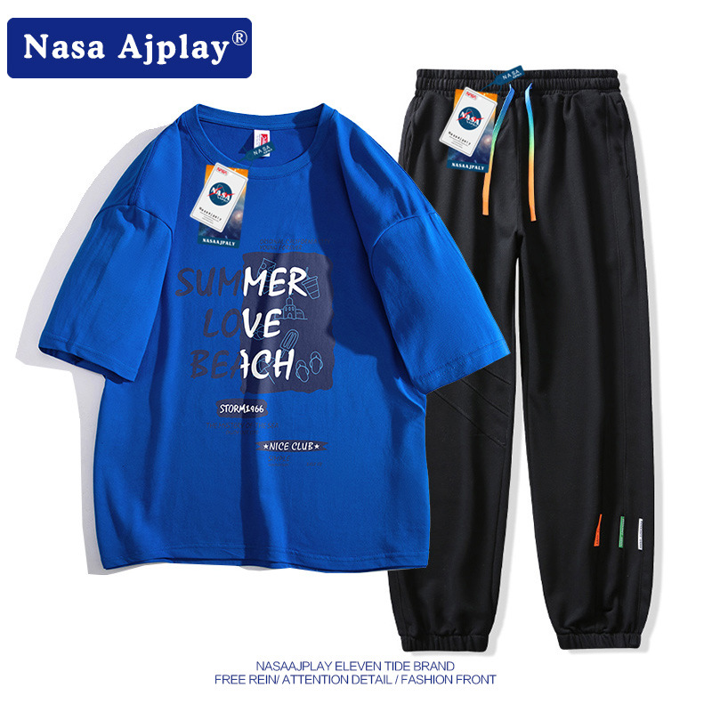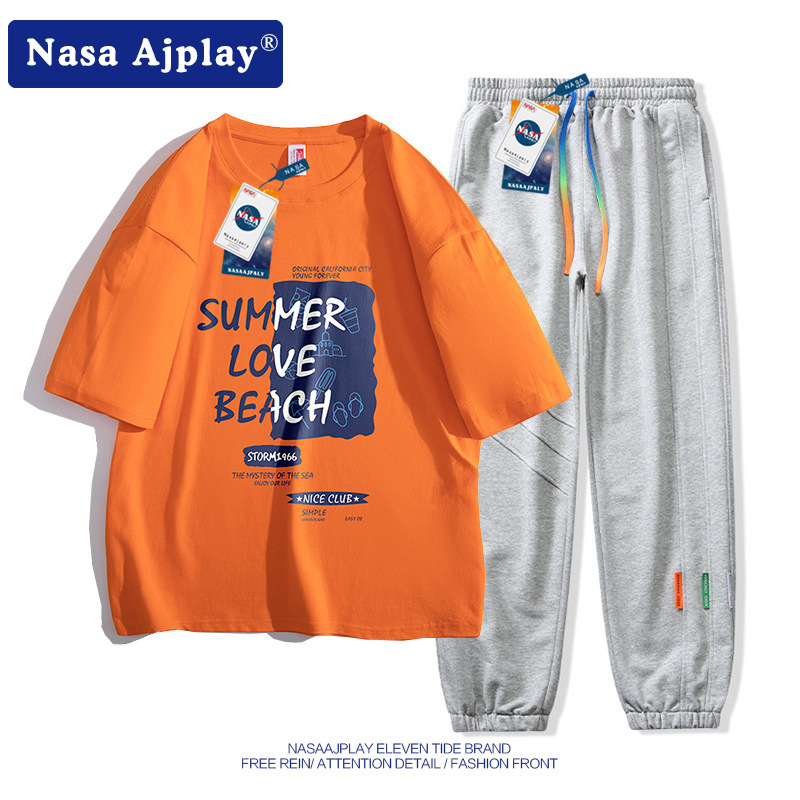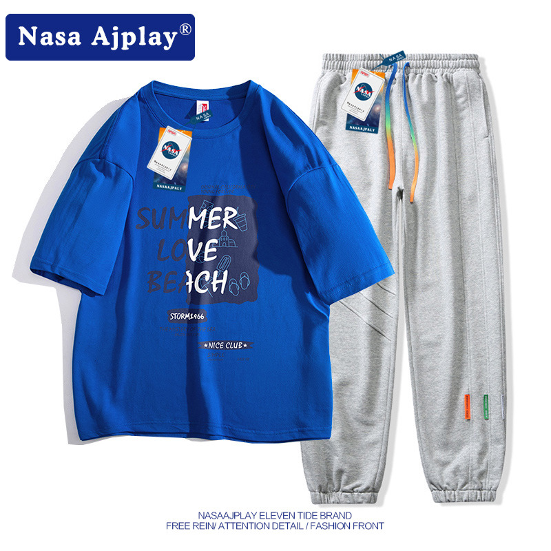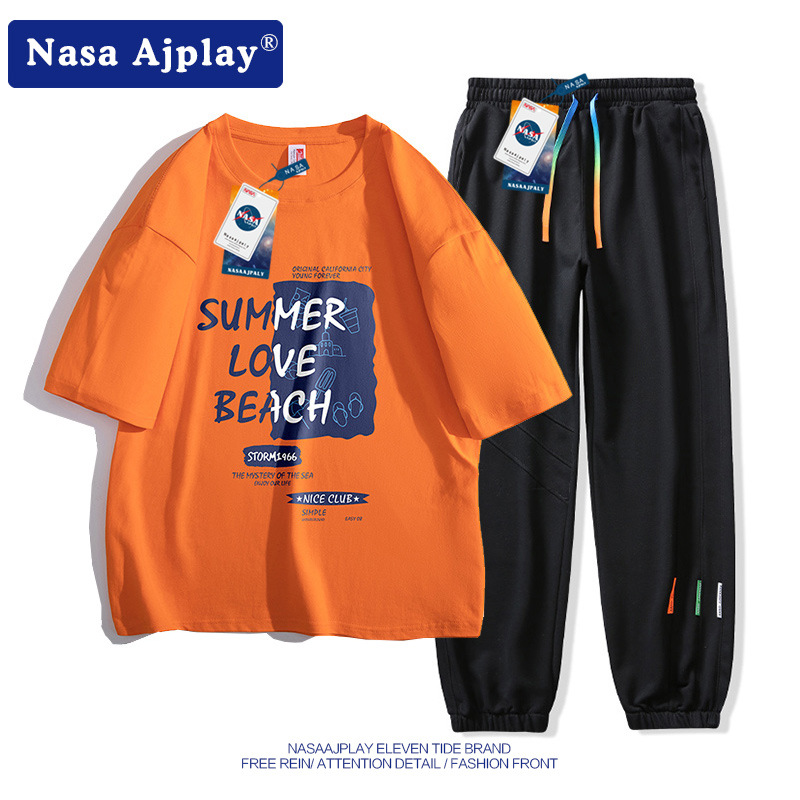 NASA 남자의 반팔 세트 여름 새로운 유행 십대 잘 생긴 발목 길이 바지 투피스 스포츠웨어스토어 가기