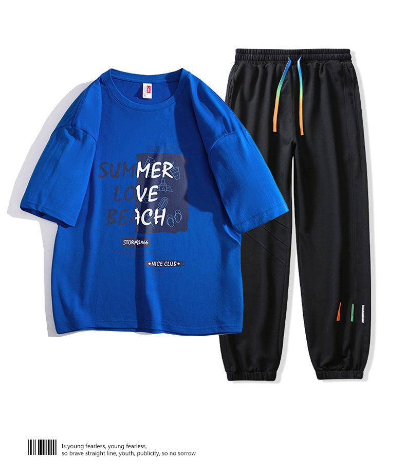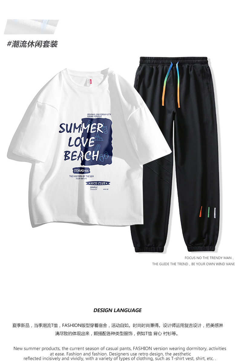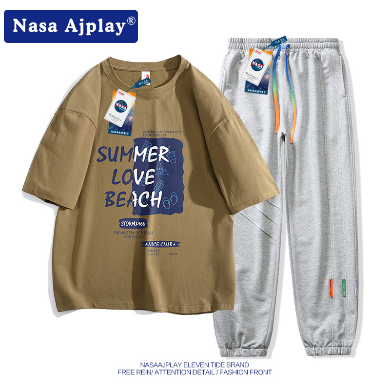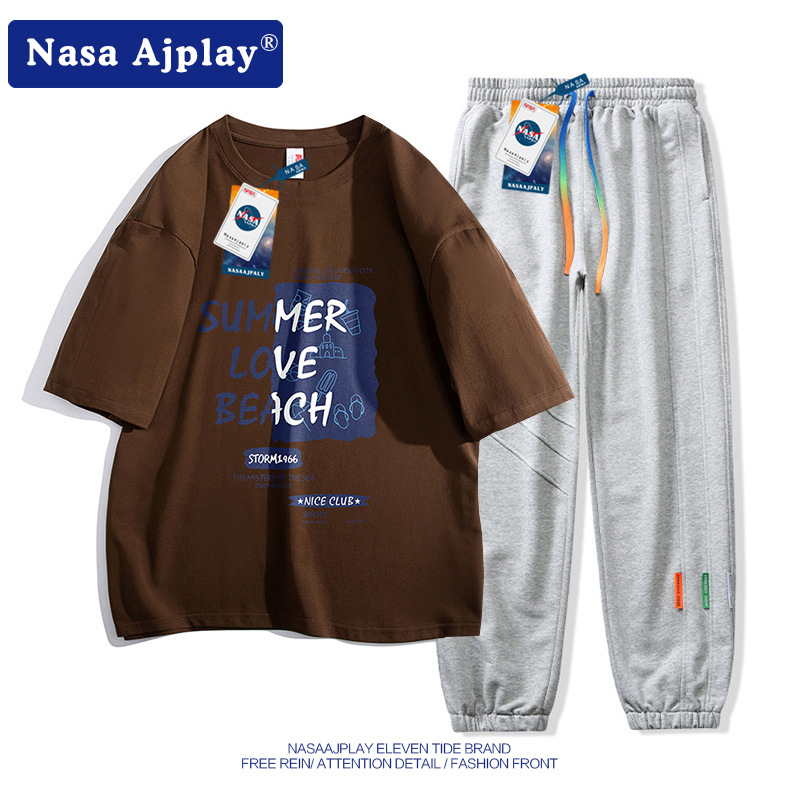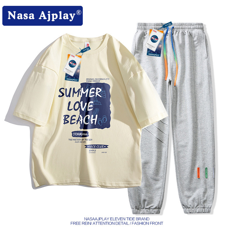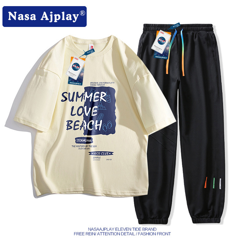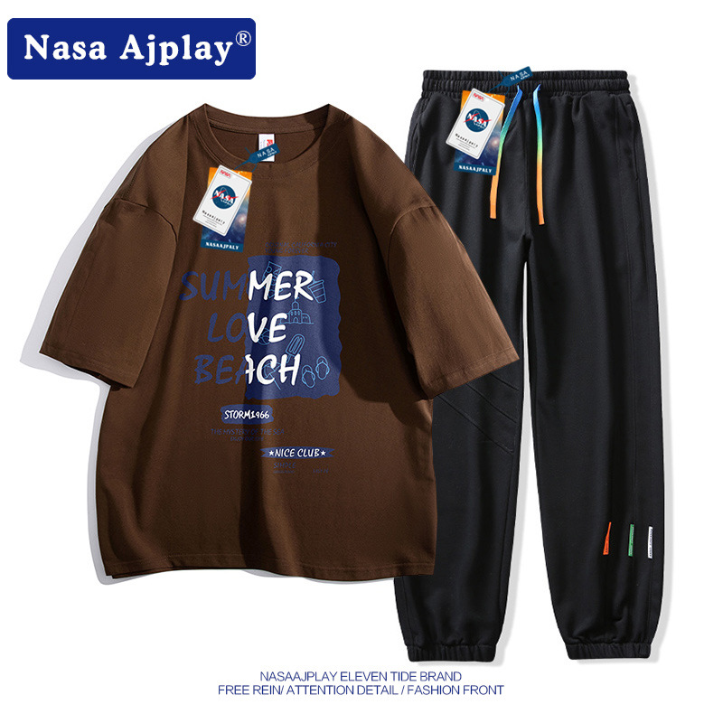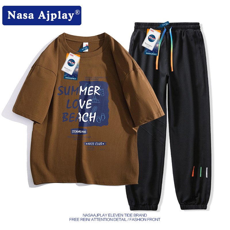 NASA 남자의 반팔 세트 여름 새로운 유행 십대 잘 생긴 발목 길이 바지 투피스 스포츠웨어스토어 가기
