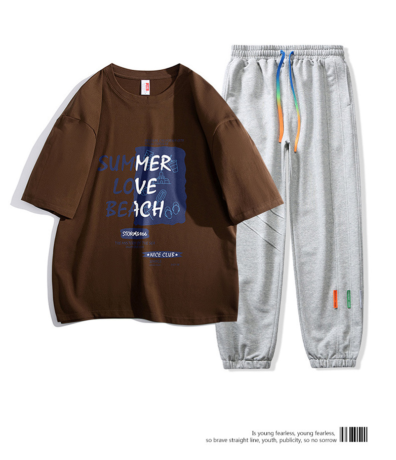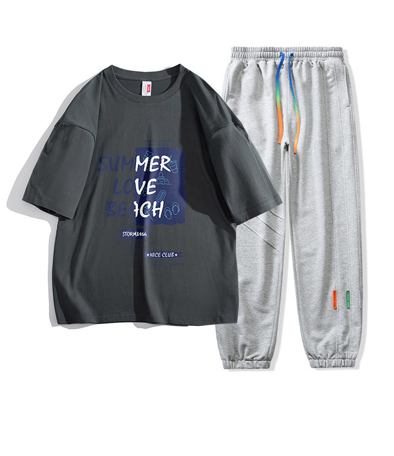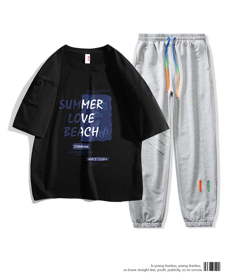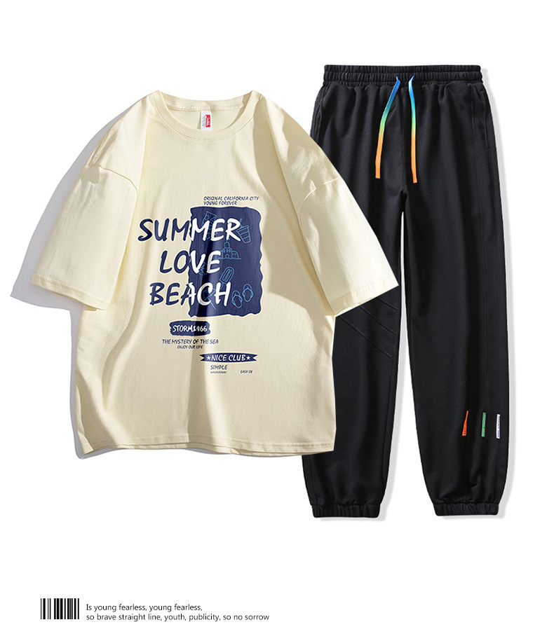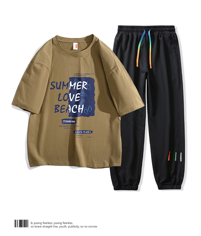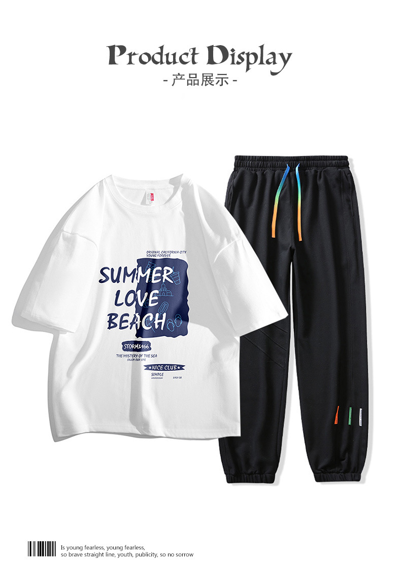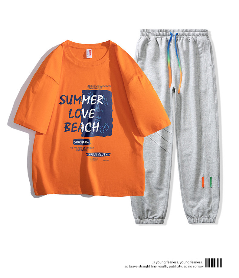 NASA 남자의 반팔 세트 여름 새로운 유행 십대 잘 생긴 발목 길이 바지 투피스 스포츠웨어스토어 가기