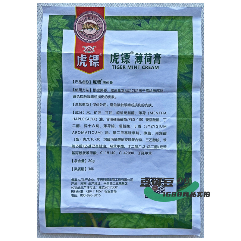 타이거 다트 민트 크림 20g 연고 모기 물린 시원하고 편안한 피부 가려운 호랑이 라벨
