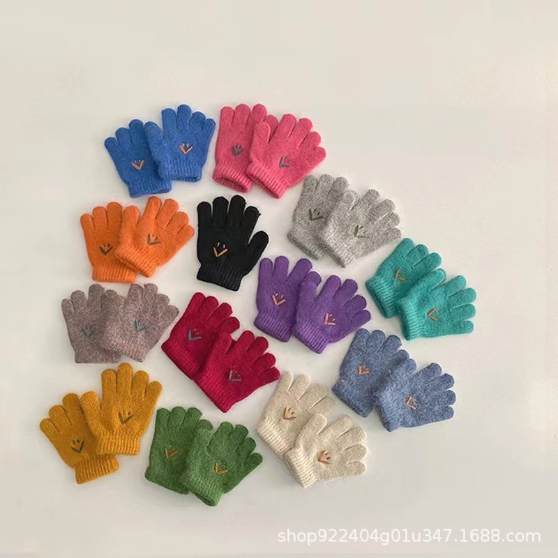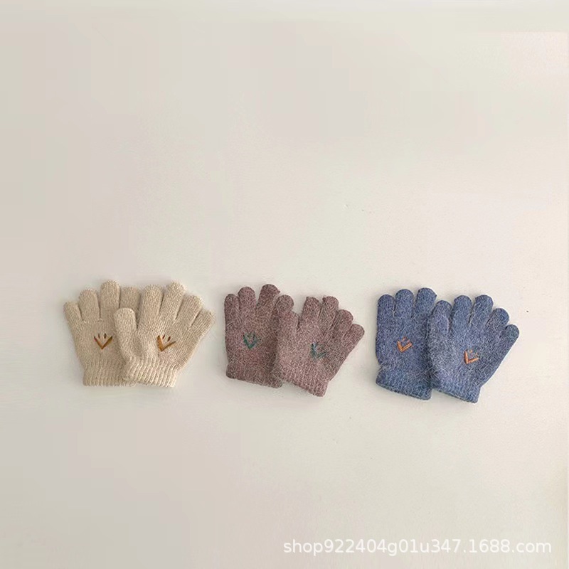 어린이 장갑 소년 겨울 소년 아기 겨울 소녀 겨울 5 손가락 어린이 따뜻한 풀 핑거 웃는 얼굴 초등학생스토어 가기