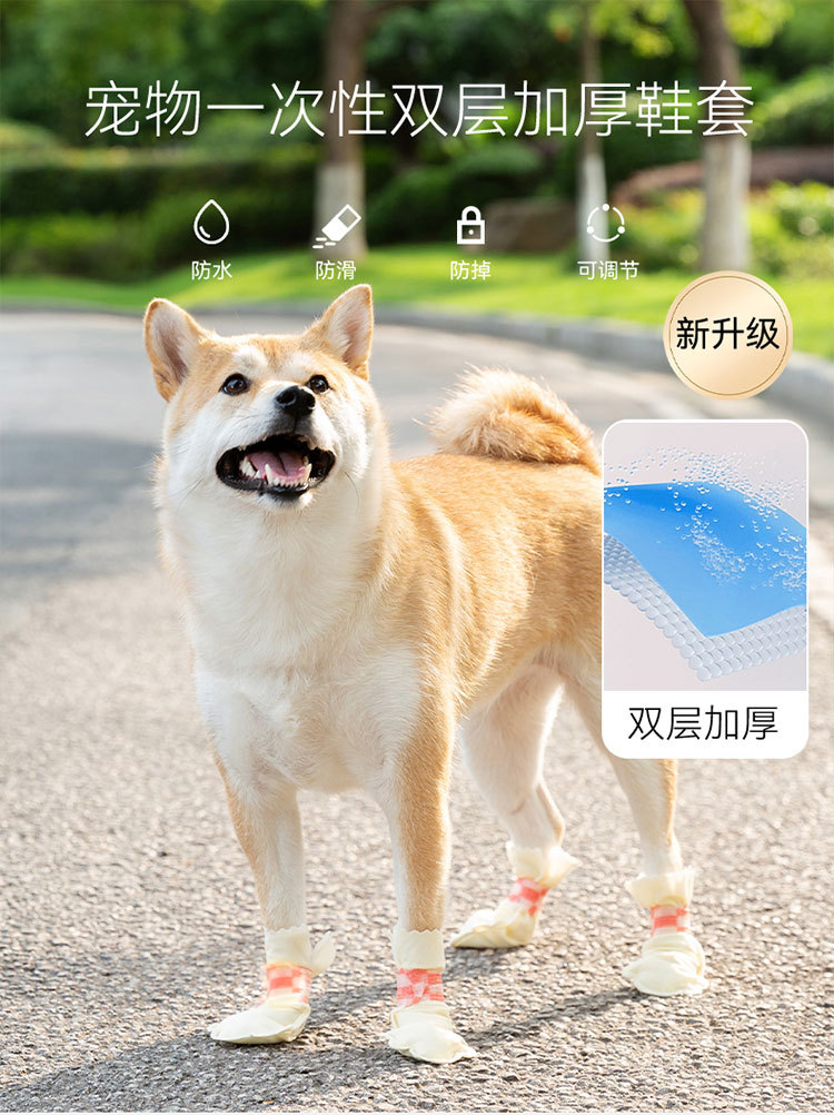 애완 동물 더블 레이어 내마모성 개 신발 일회용 발 커버 Corgi Bixiong 양말 낙하 방지 방수 오염 방지 애완 동물 신발스토어 가기