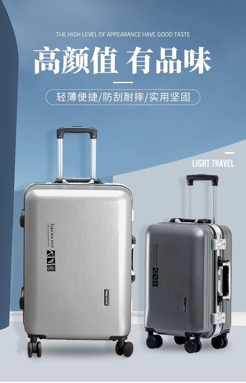 USB 충전 인터페이스가있는 20 인치 탑승 여행 가방은 유니버설 휠 내마모성 수하물 알루미늄 프레임 24 인치 낙하 방지스토어 가기