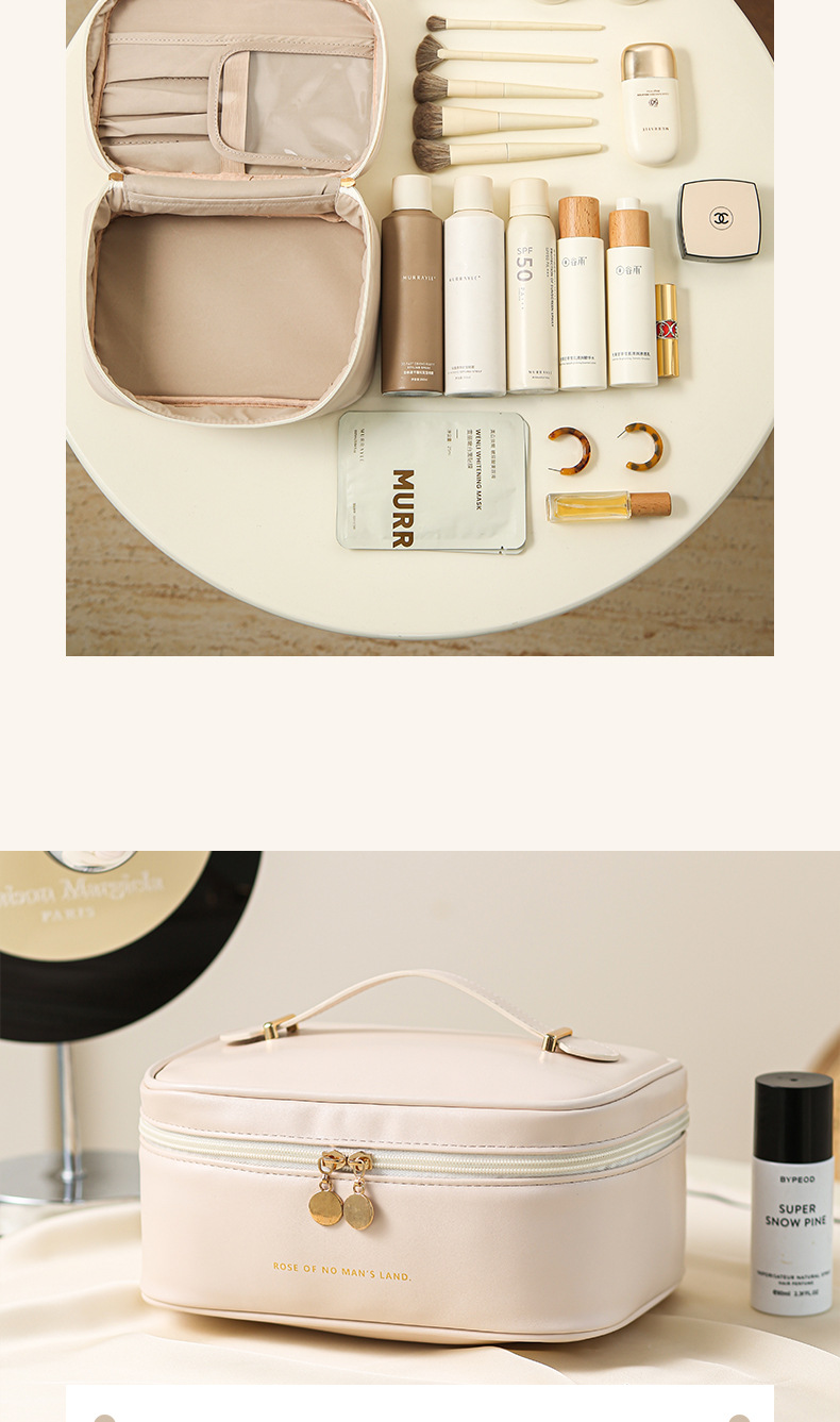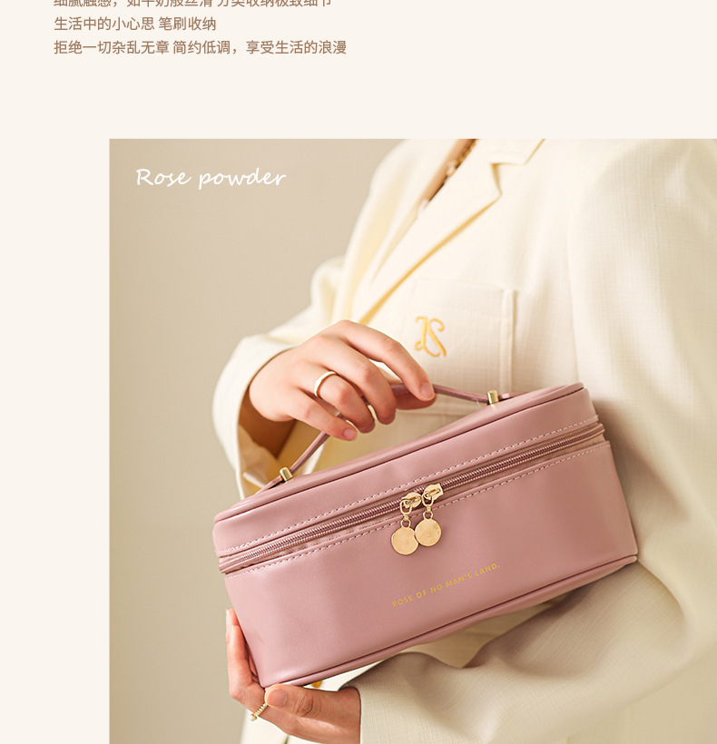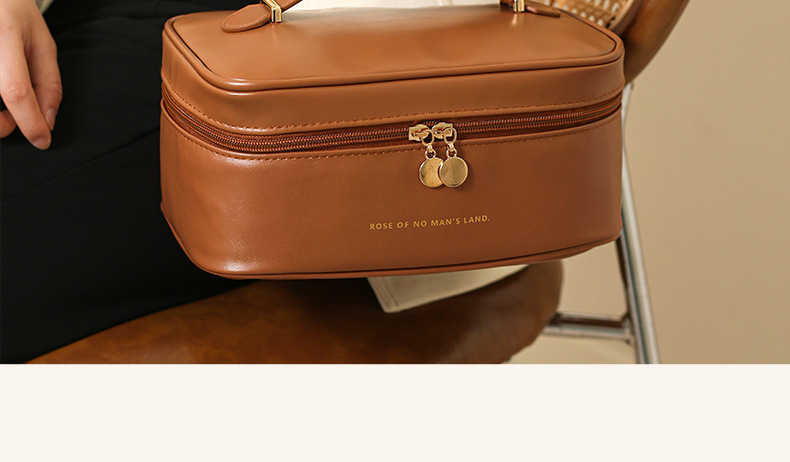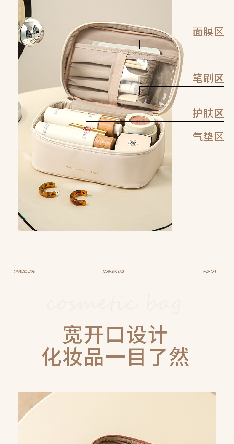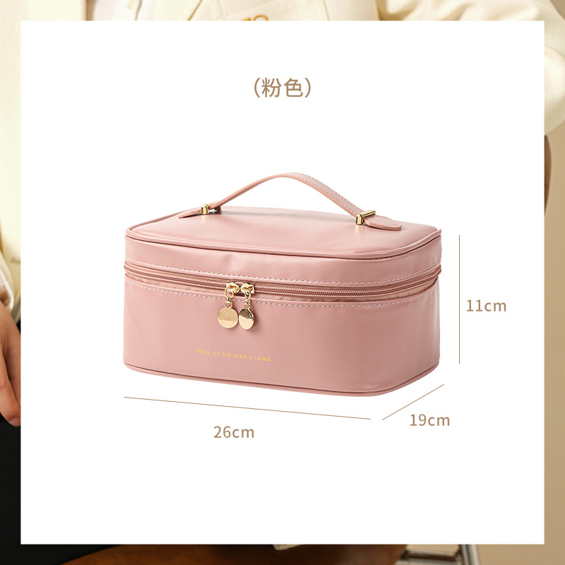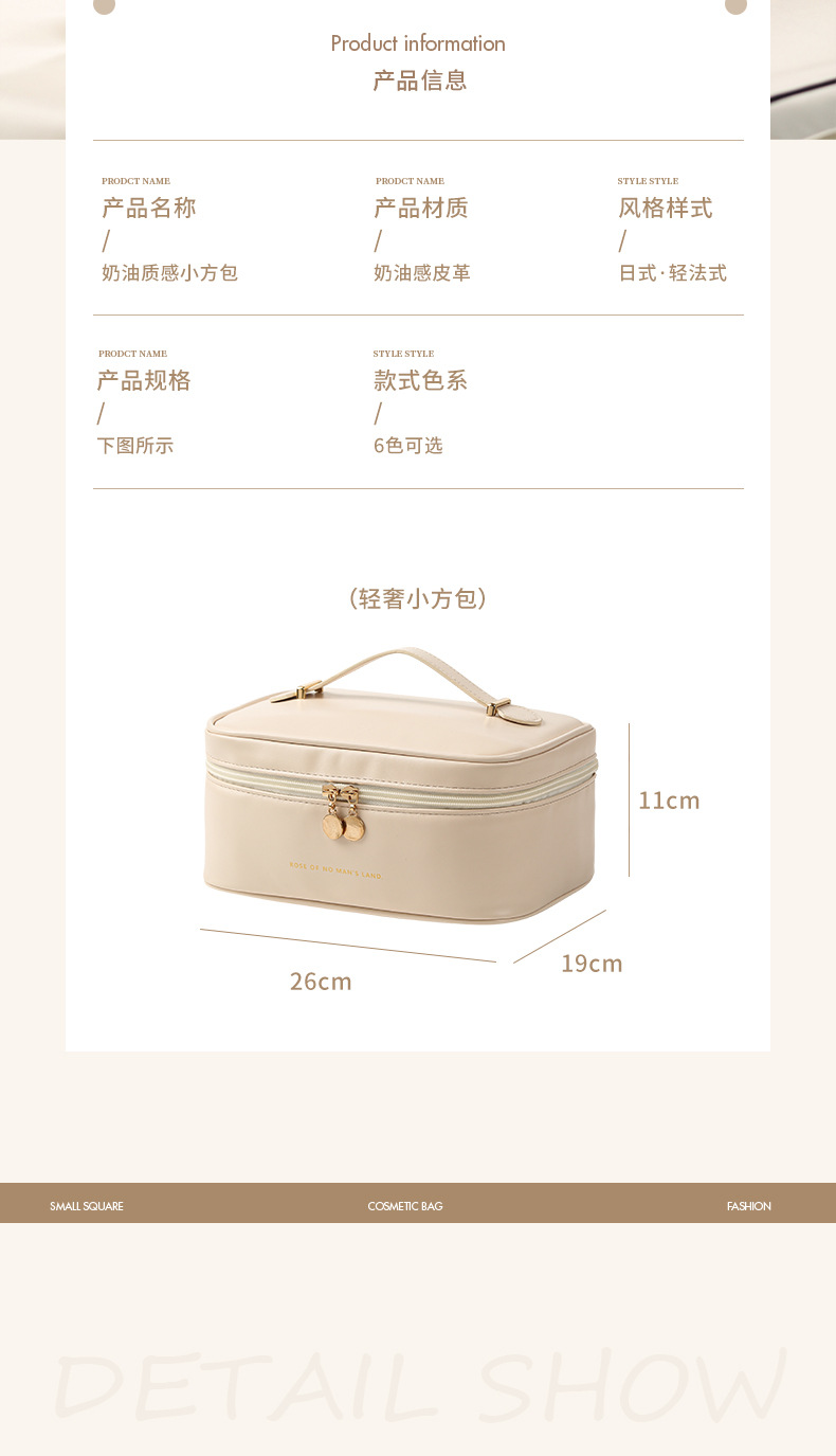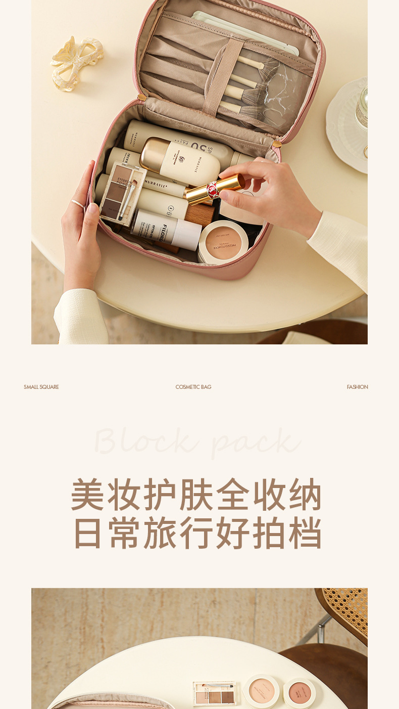 새로운 대용량 고가 인스타 화장품 보관 가방 어반 심플 스퀘어 PU 가죽 휴대용 화장품 가방스토어 가기