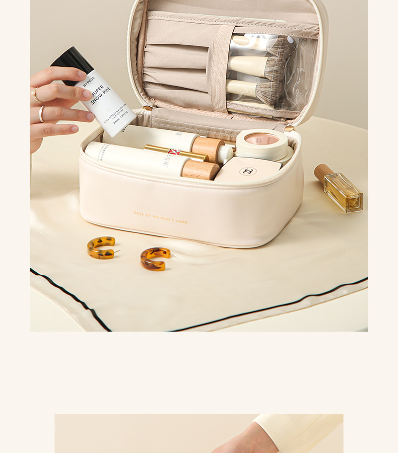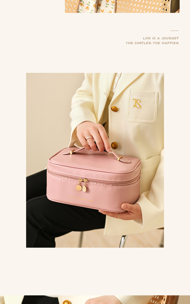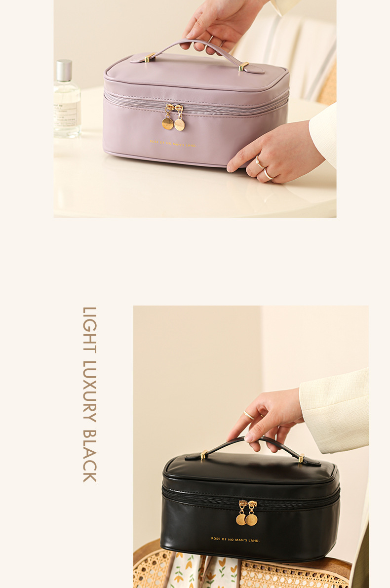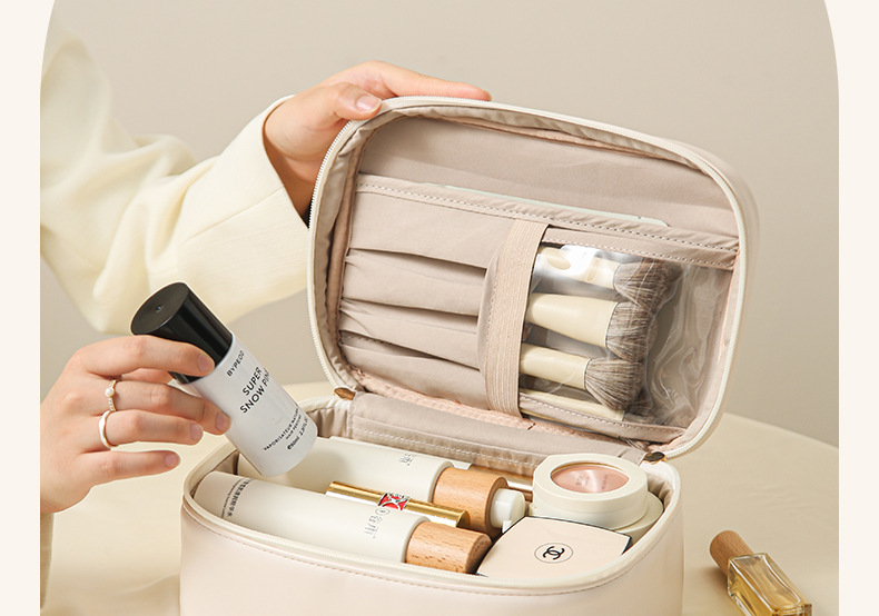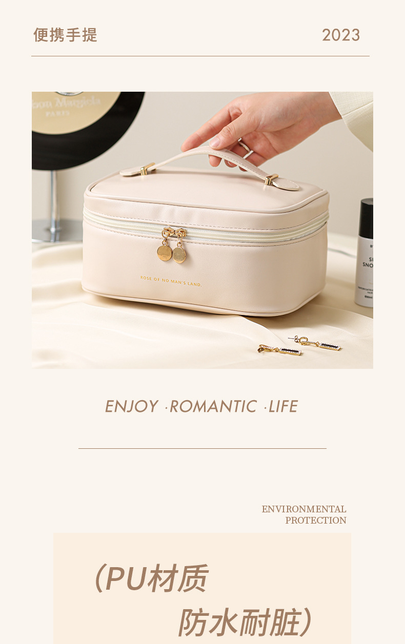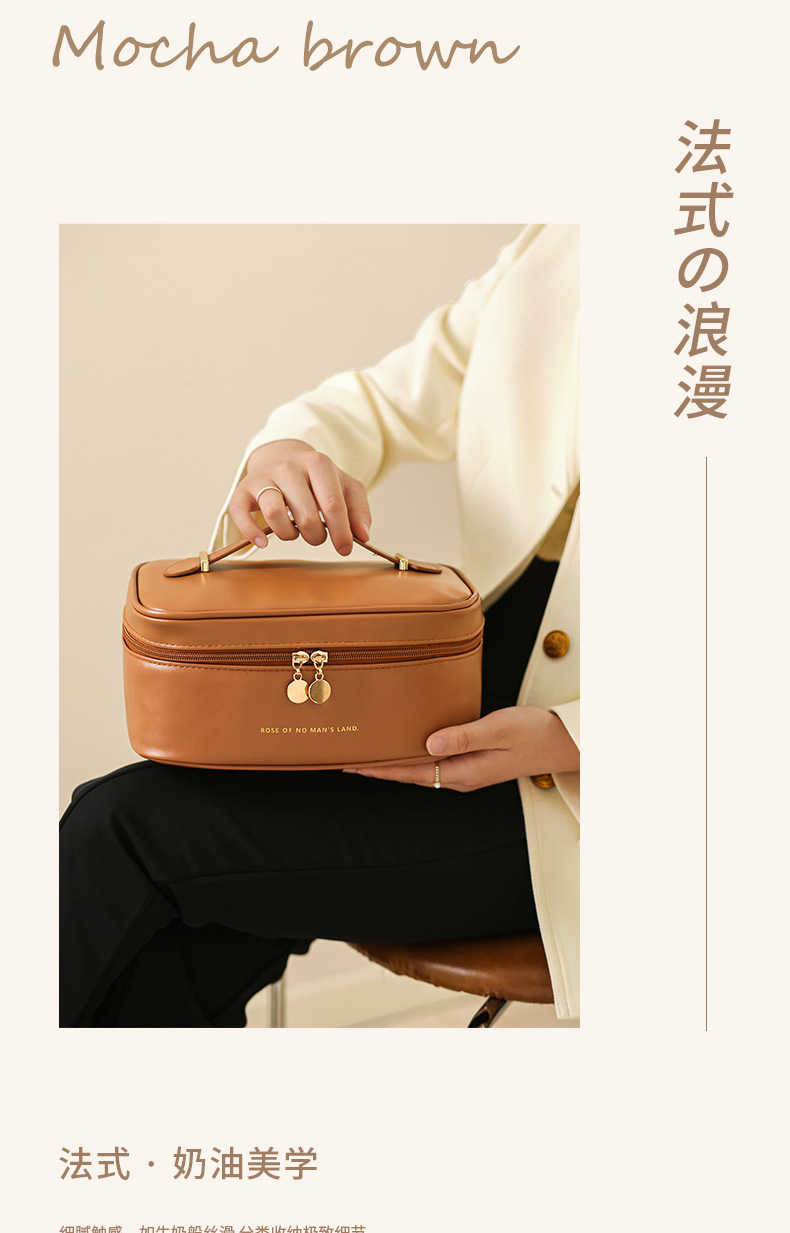 새로운 대용량 고가 인스타 화장품 보관 가방 어반 심플 스퀘어 PU 가죽 휴대용 화장품 가방스토어 가기