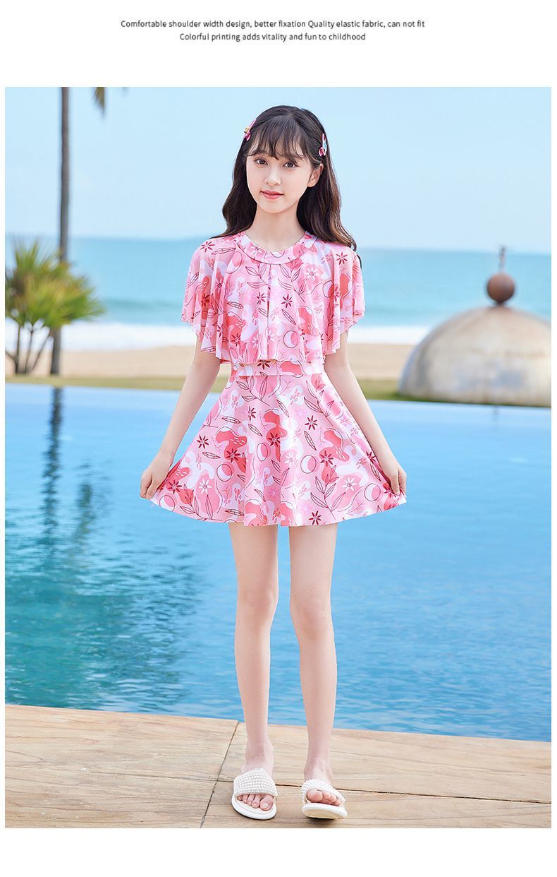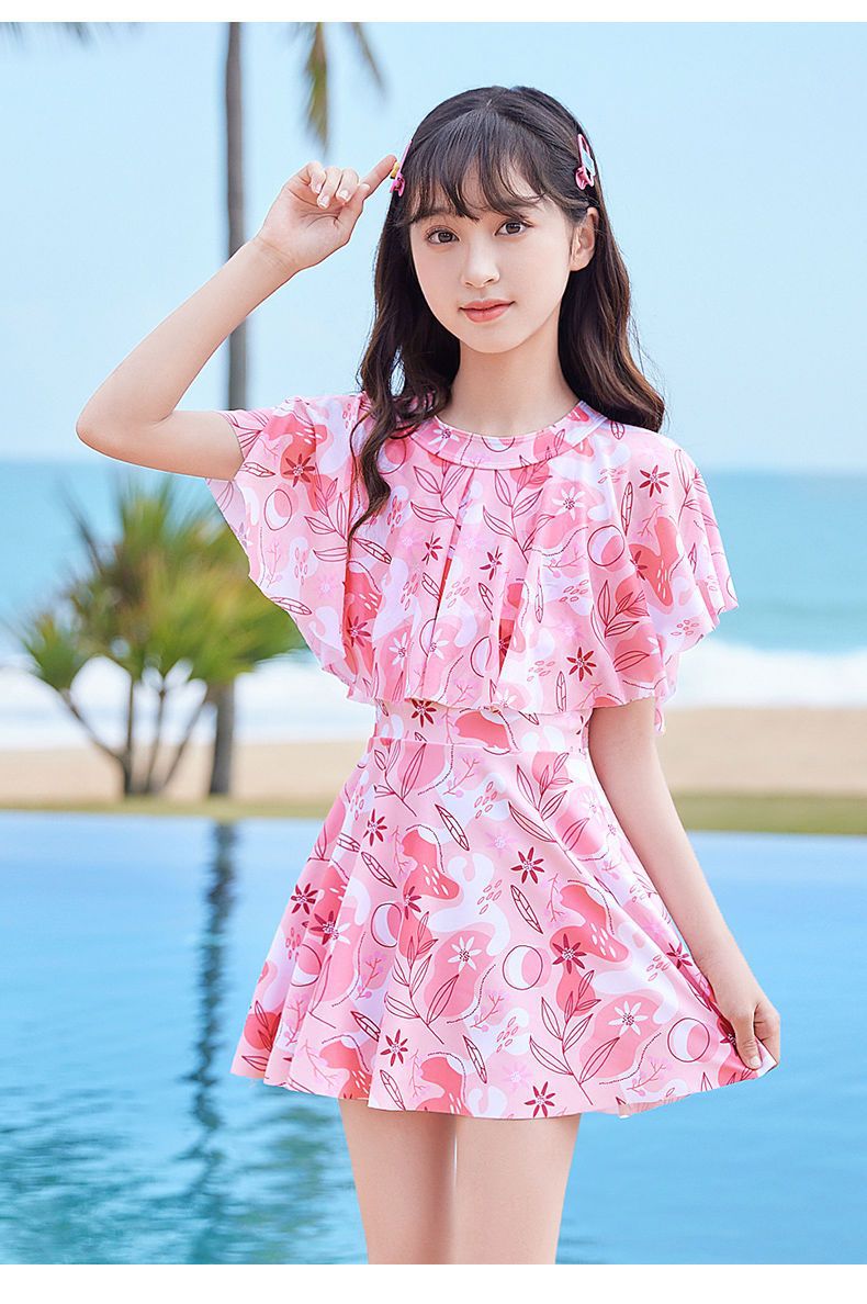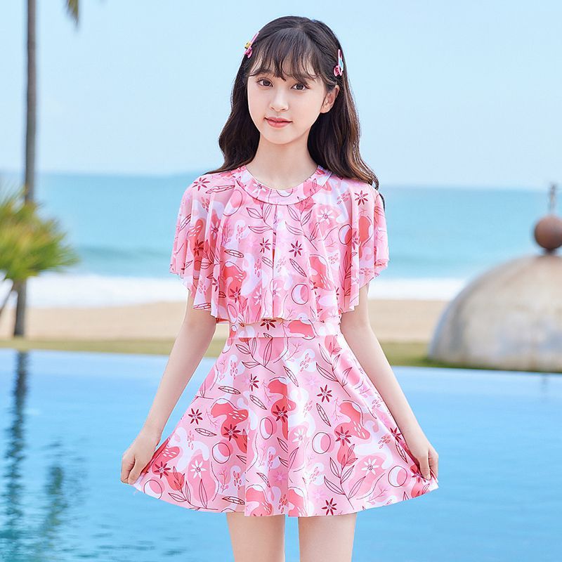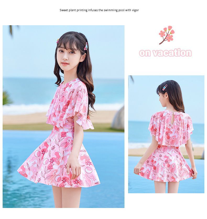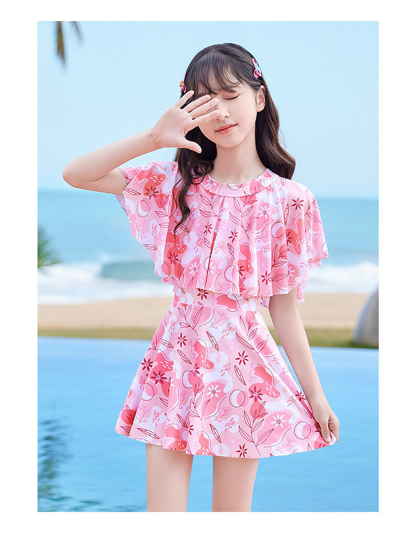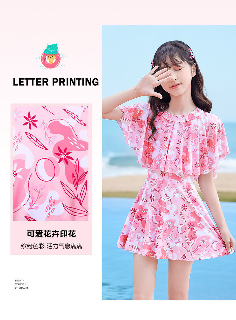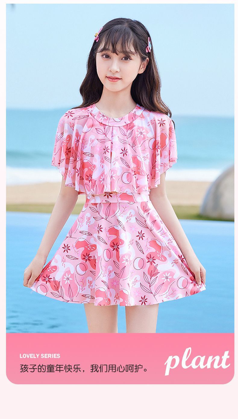 어린이 수영복 소녀 새로운 여름 원피스 소형, 중형 및 대형 어린이 소녀 공주 스커트 스타일 귀여운 프린트 수영복