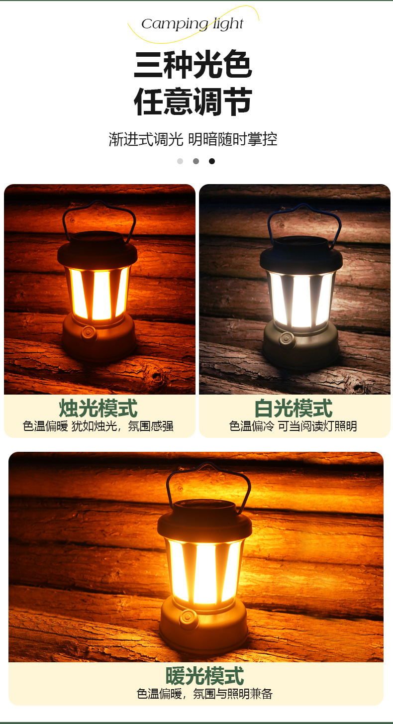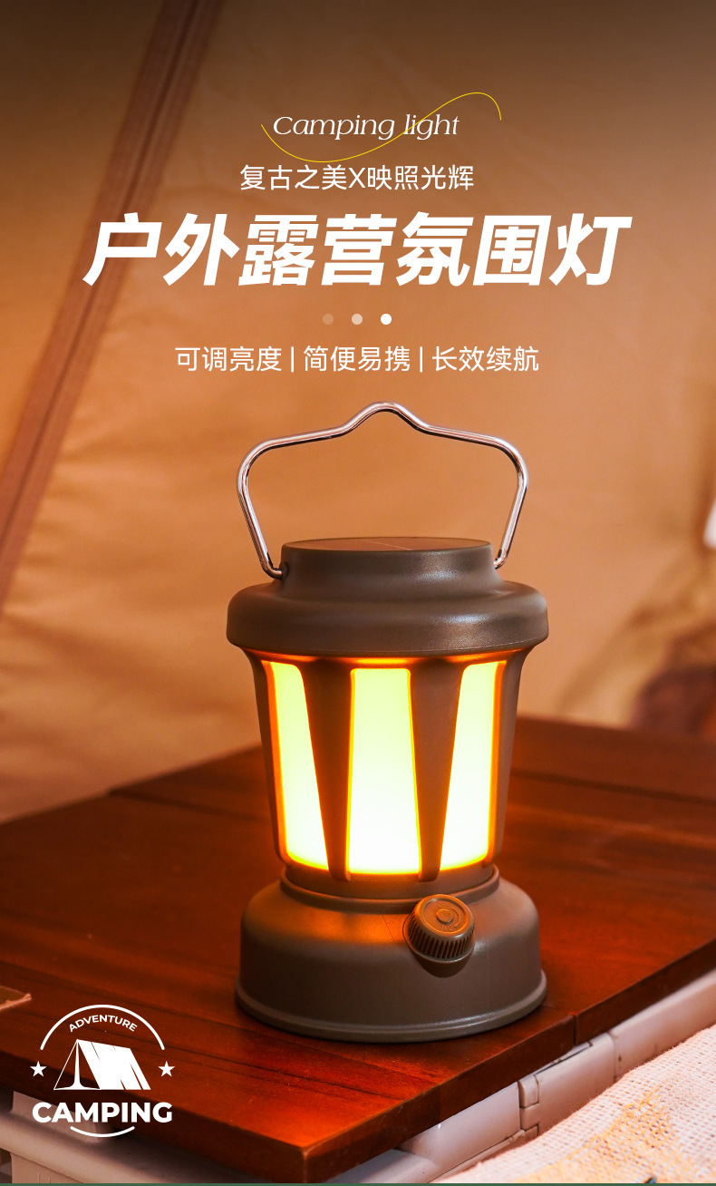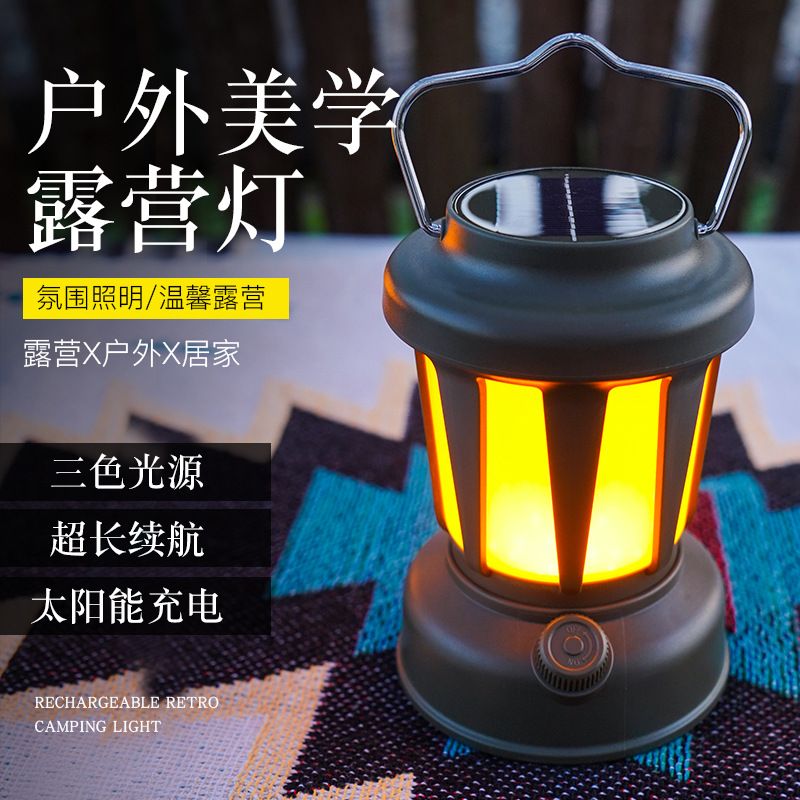 TikTok 폭발성 캠핑 램프 분위기 불꽃 캠핑 텐트 램프 레트로 말 램프 충전식 휴대용 램프 야외 램프