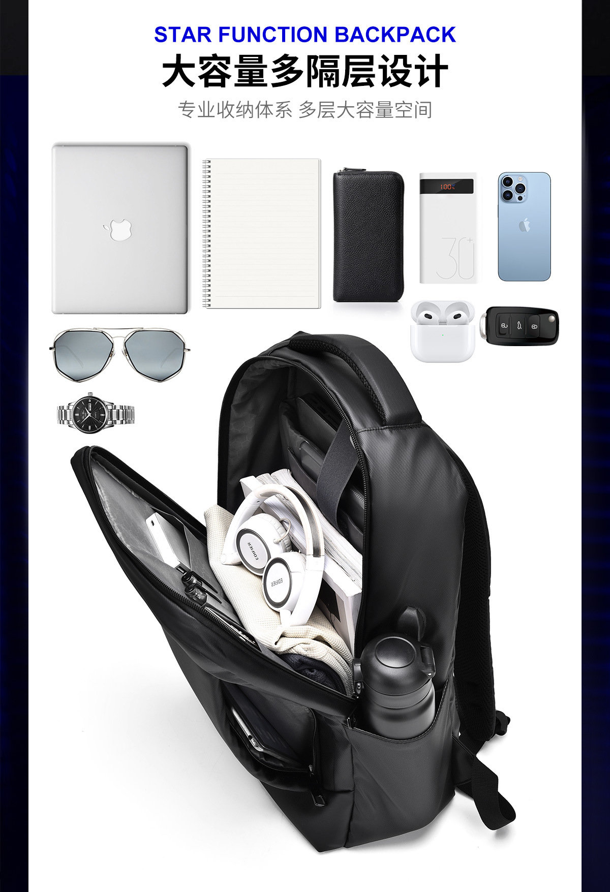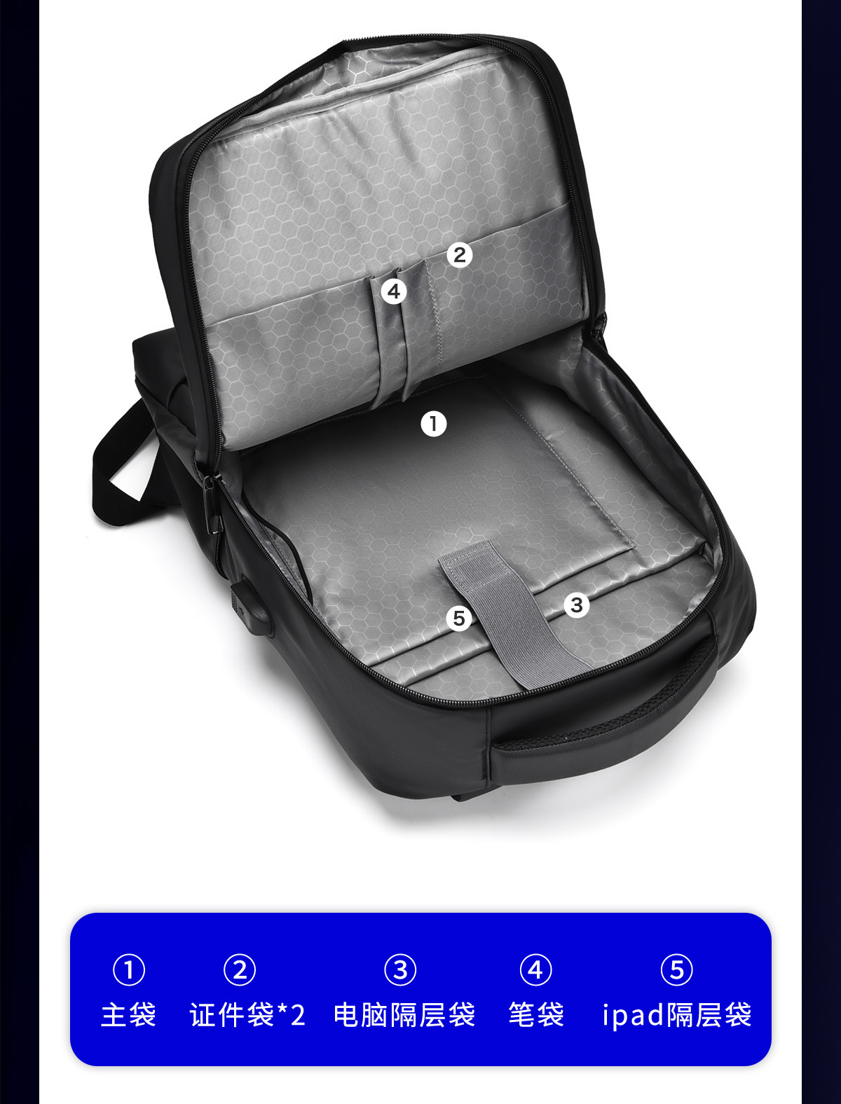 원래 남성용 비즈니스 배낭 다기능 USB 배낭 머리카락을 대신하여 대용량 컴퓨터 배낭 제조 업체스토어 가기