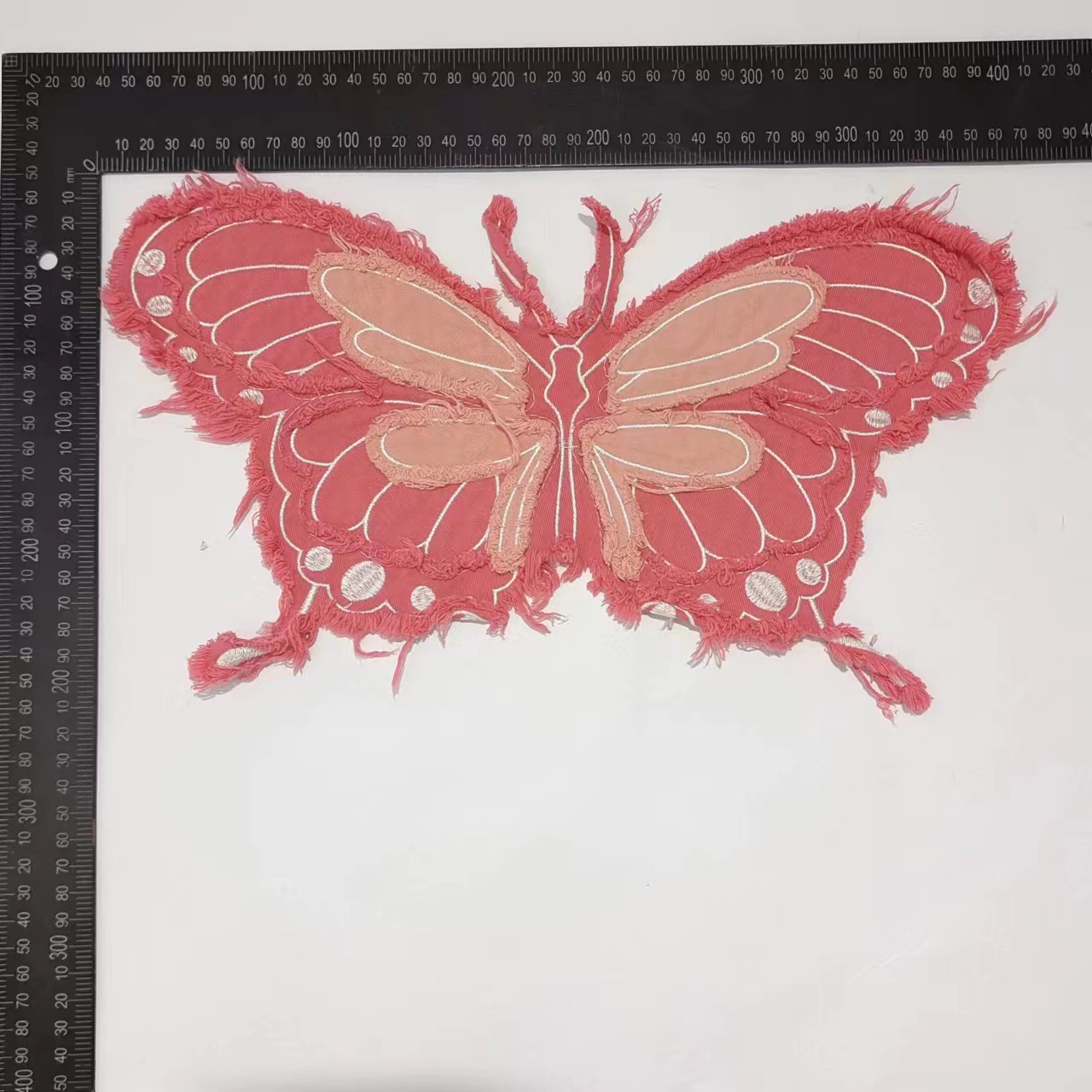 Xiaohongshu 인기 씻어 데님 나비 천 패치 유럽과 미국의 자수 모피 가장자리 패치 패치 대형 의류 액세서리
