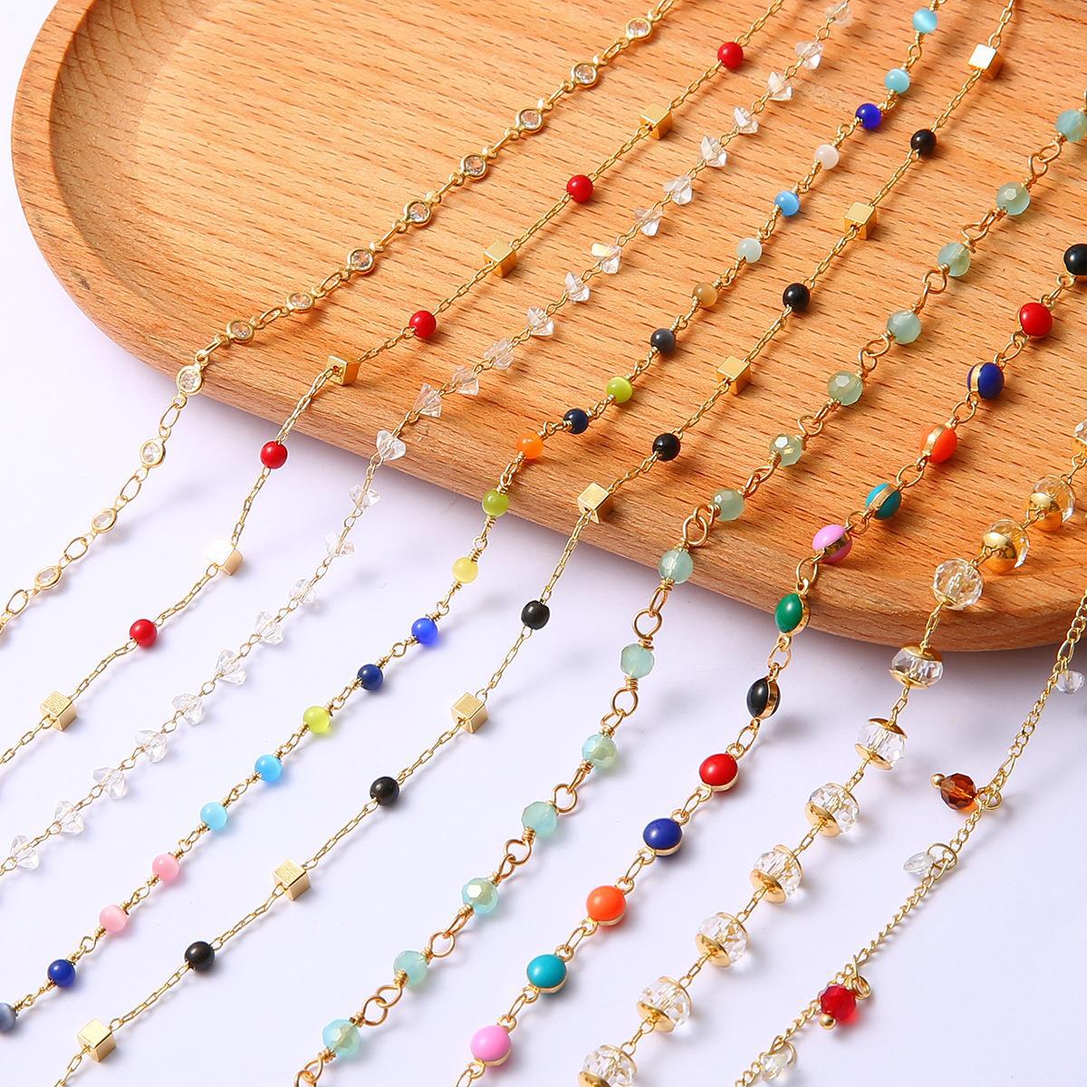 크로스 보더 핫 세일 컬러 18K 골드 드롭 오일 컬러 자갈 구리 체인 DIY 귀 보석 팔찌 목걸이 액세서리스토어 가기