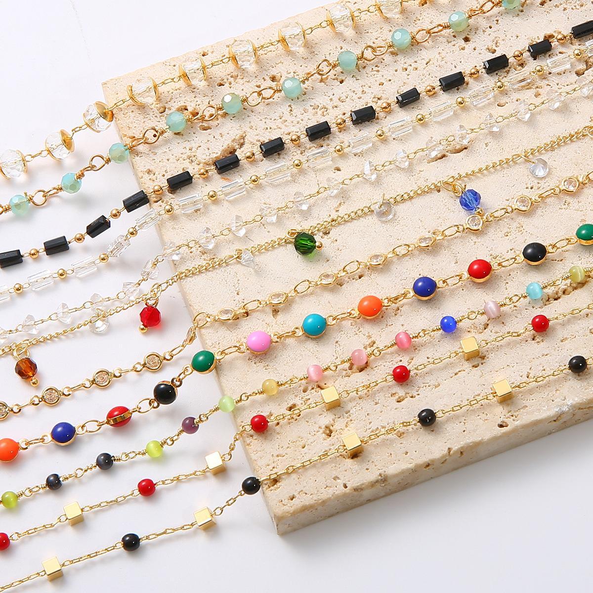 크로스 보더 핫 세일 컬러 18K 골드 드롭 오일 컬러 자갈 구리 체인 DIY 귀 보석 팔찌 목걸이 액세서리